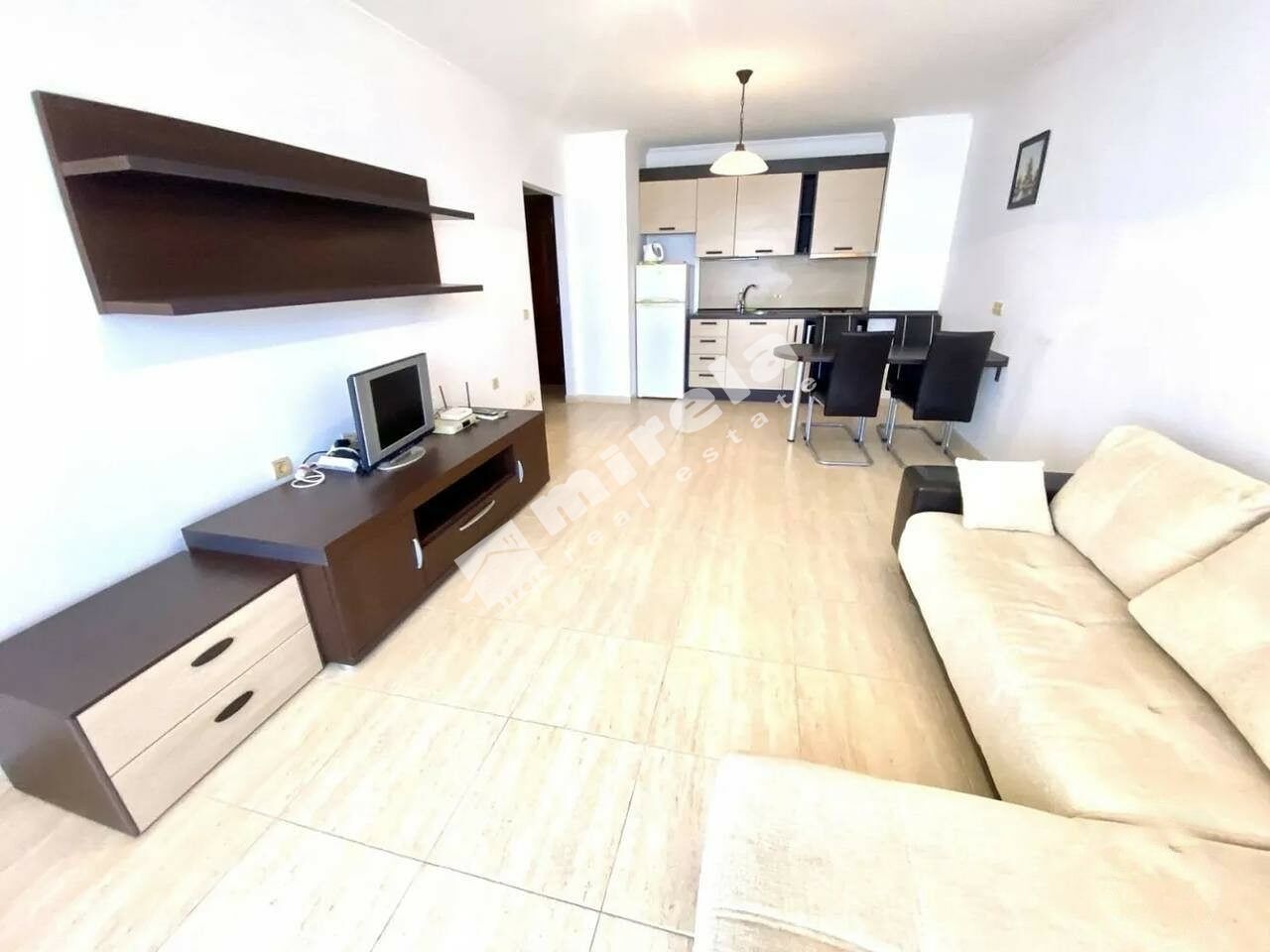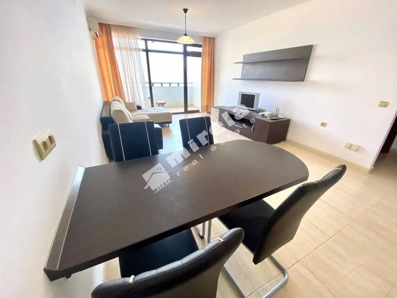 Апартаментът се намира на втори жилищен етаж с асансьор. Разпределението включва просторна дневна с обособен кухненски бокс, трапезарен кът и кът за отдих, спалня, баня с тоалетна, тераса с просторна морска панорама. Изключително подходящ е за живеене и отдаване под наем целогодишно.