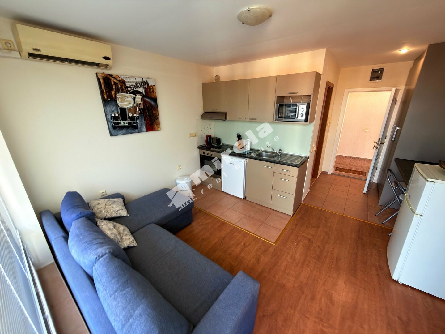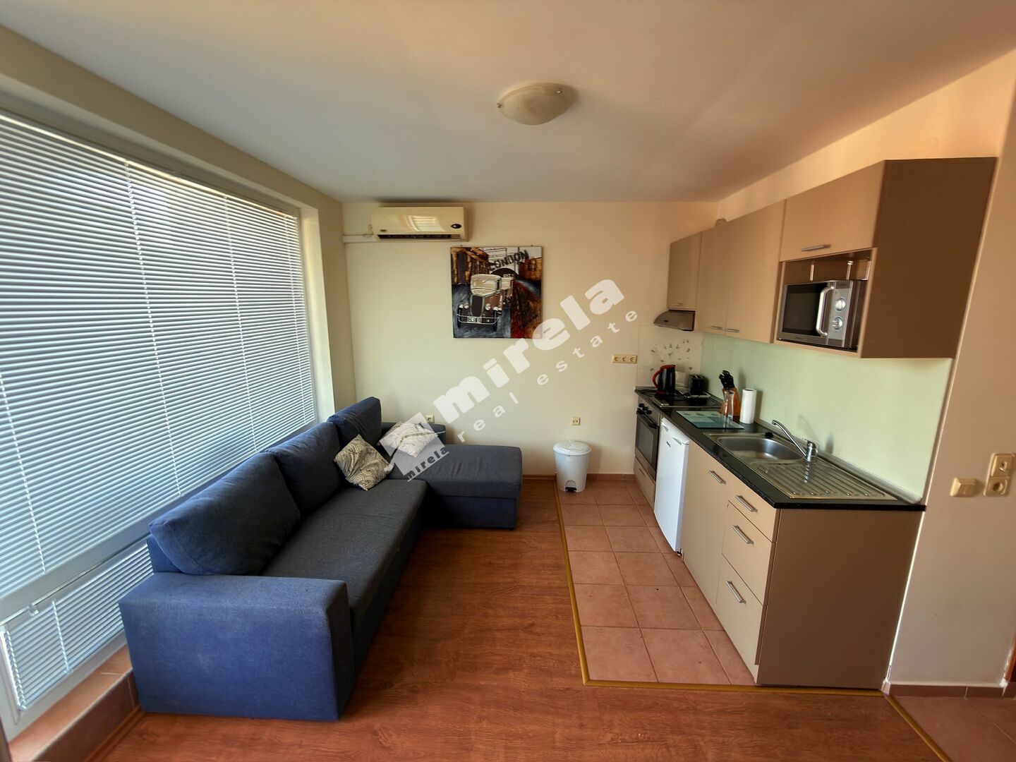 Апартаментът се състои от всекидневна с кухня, спалня, баня с тоалетна, тераса.