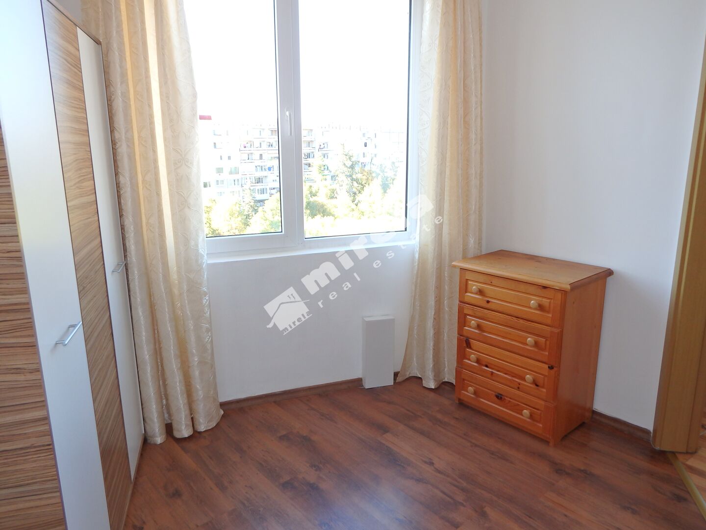 Жилището се състои от антре, дневна, светъл кухненски бокс, спалня и баня с тоалетна. Предлага се с наличното обзавеждане.