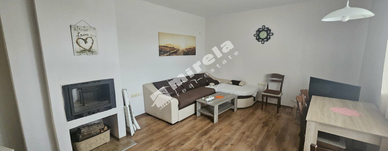 Апартаментът е разположен на втори етаж над партера, с функционално разпределение. Състои се от дневна с кухня и балкон, спалня с балкон, баня с тоалетна, коридор. В дневната на жилището е изградена камина за отопление.Продава се ведно с таванско помещение от 118 кв.м. Към апартамента има паркомясто.