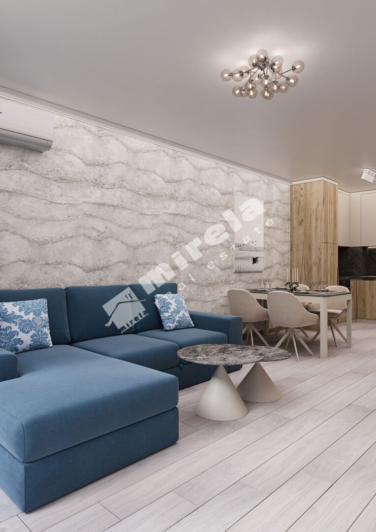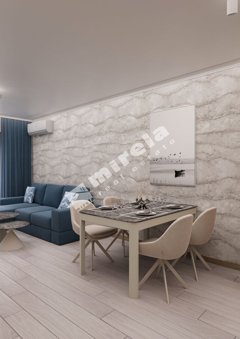 Апартаментът е с отлично разпределение на пространството - просторна дневна с кухненски бокс, отделна спалня, баня и тераса, вкл. покривна тераса 21.08 кв.м. Предлага се напълно обзаведен с високо качество на довършителните работи, готов за нанасяне или незабавно отдаване под наем.