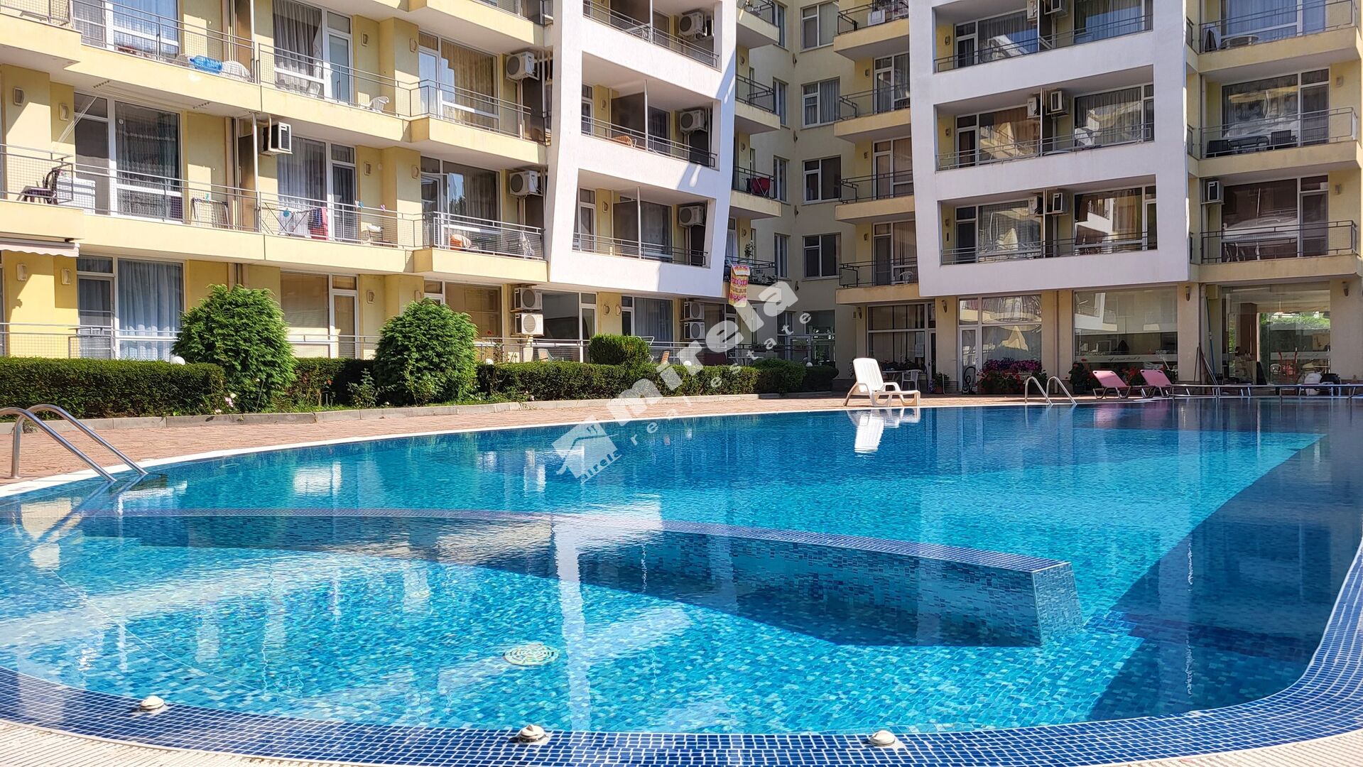 На територията на комплекса има басейн, контролиран достъп, видео набюлдение.