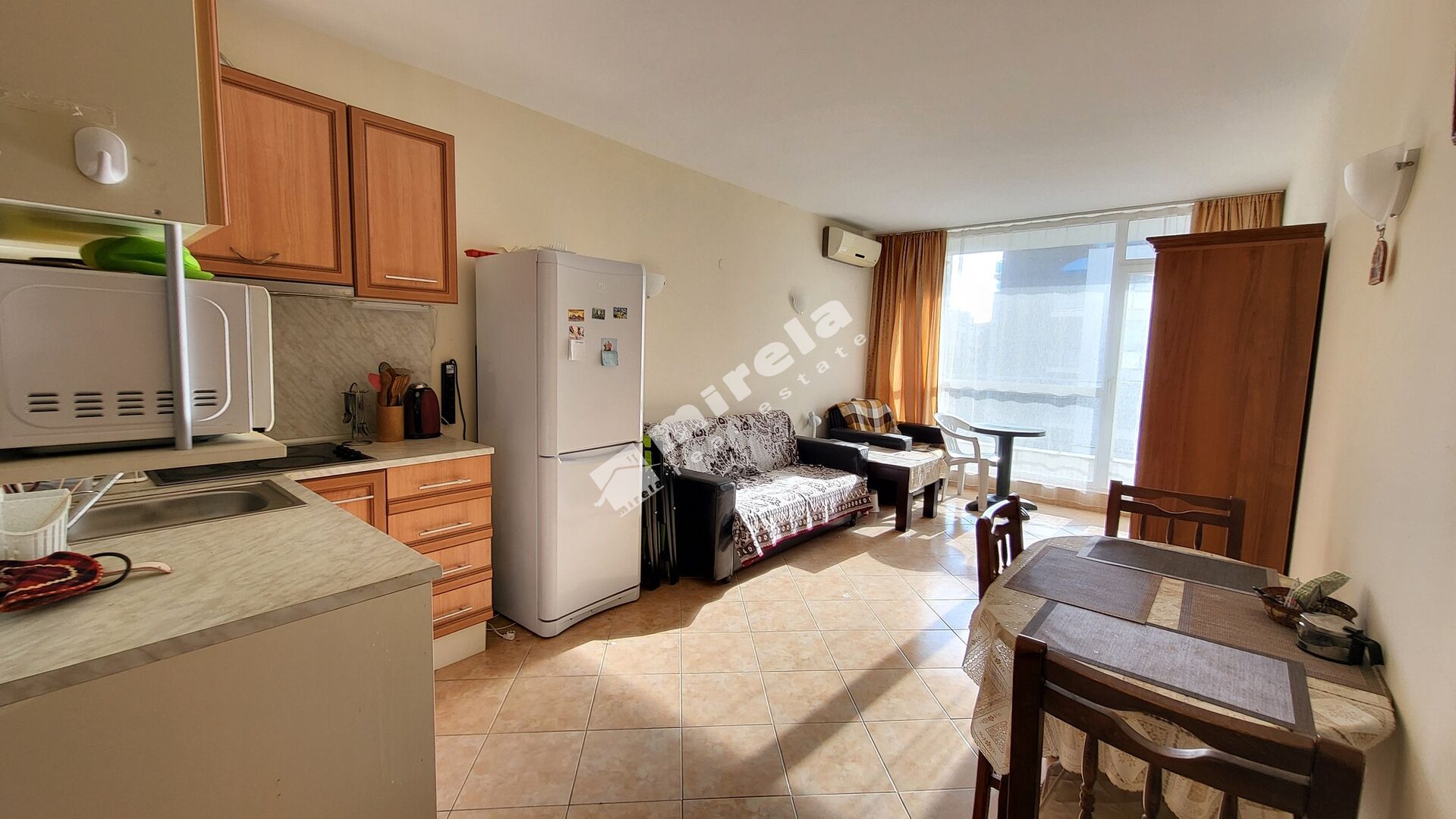 Двустаен апартамент в затворен комплекс Сънсет Бийч 2 в к.к. Слънчев бряг. Комплексът се намира в кв. Чайка, северозапаната част на курорта. В района има магазини и ресторанти, както и магазин Лидъл е на 300 м разтояние.