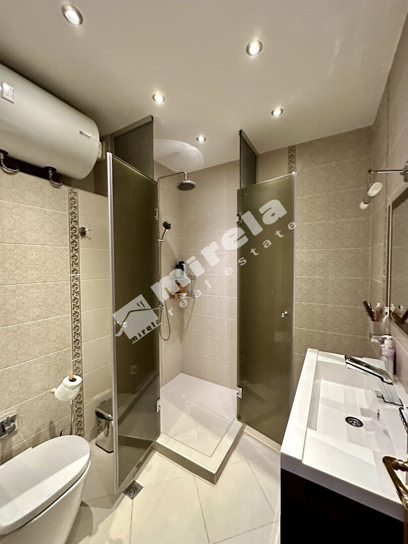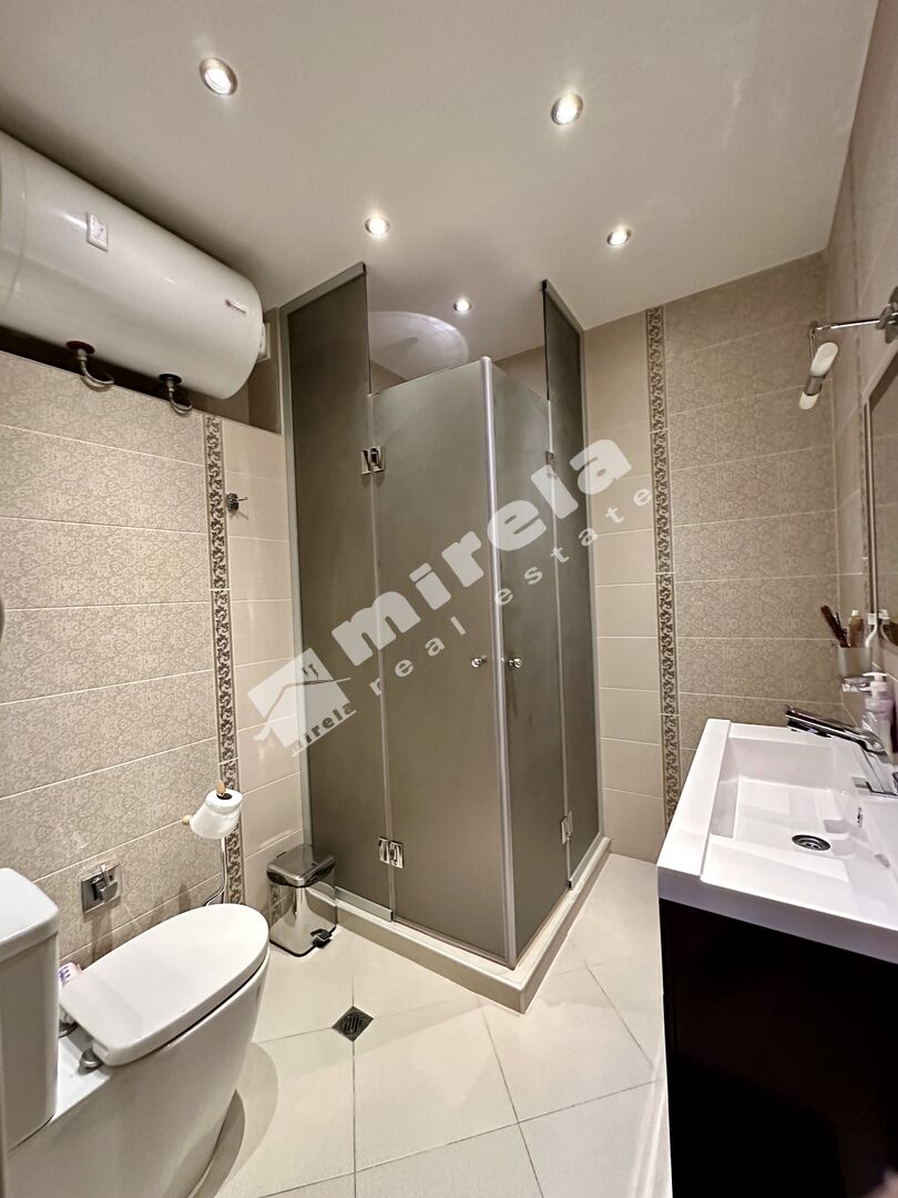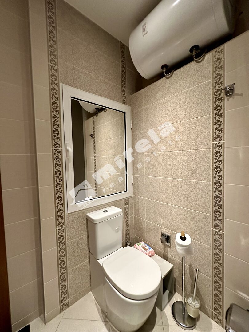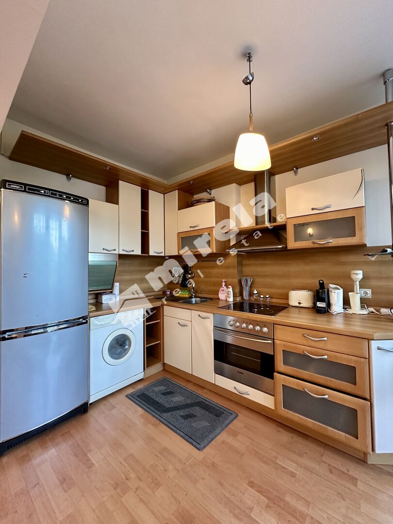 Апартаментът е напълно обзаведен и има на разположение всички необходими електроуреди. Състои се от антре, дневна с кухненски бокс и трапезария, спалня, баня с тоалетна и две тераси.