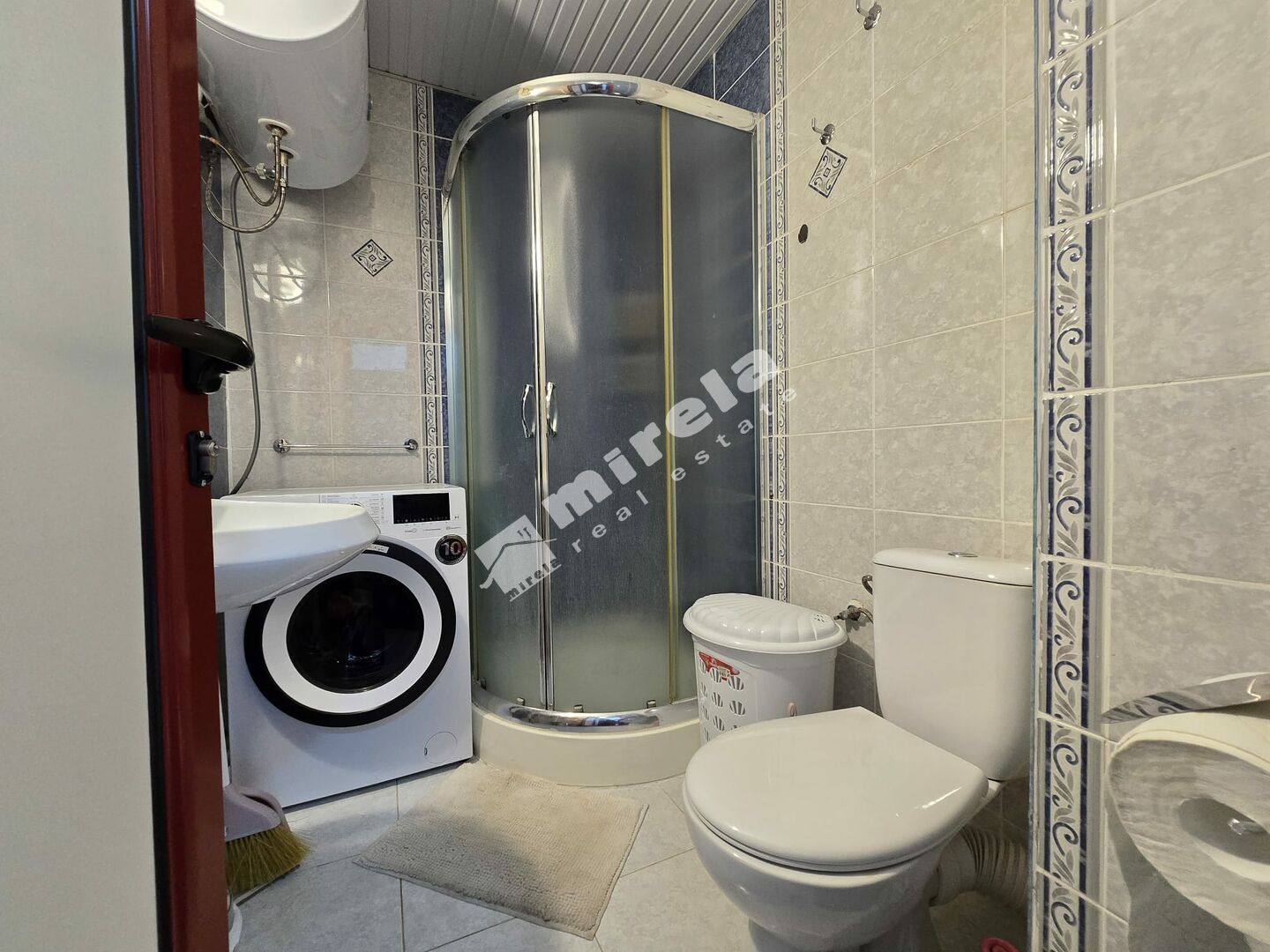 Апартаментът има следното разпределение: коридор, баня с тоалетна, спалня, всекидневна с кухненски бокс и тераса с изглед към басейн. Изложение - югоизточно. 7ми етаж от 7, няма течове или проблеми с влага.