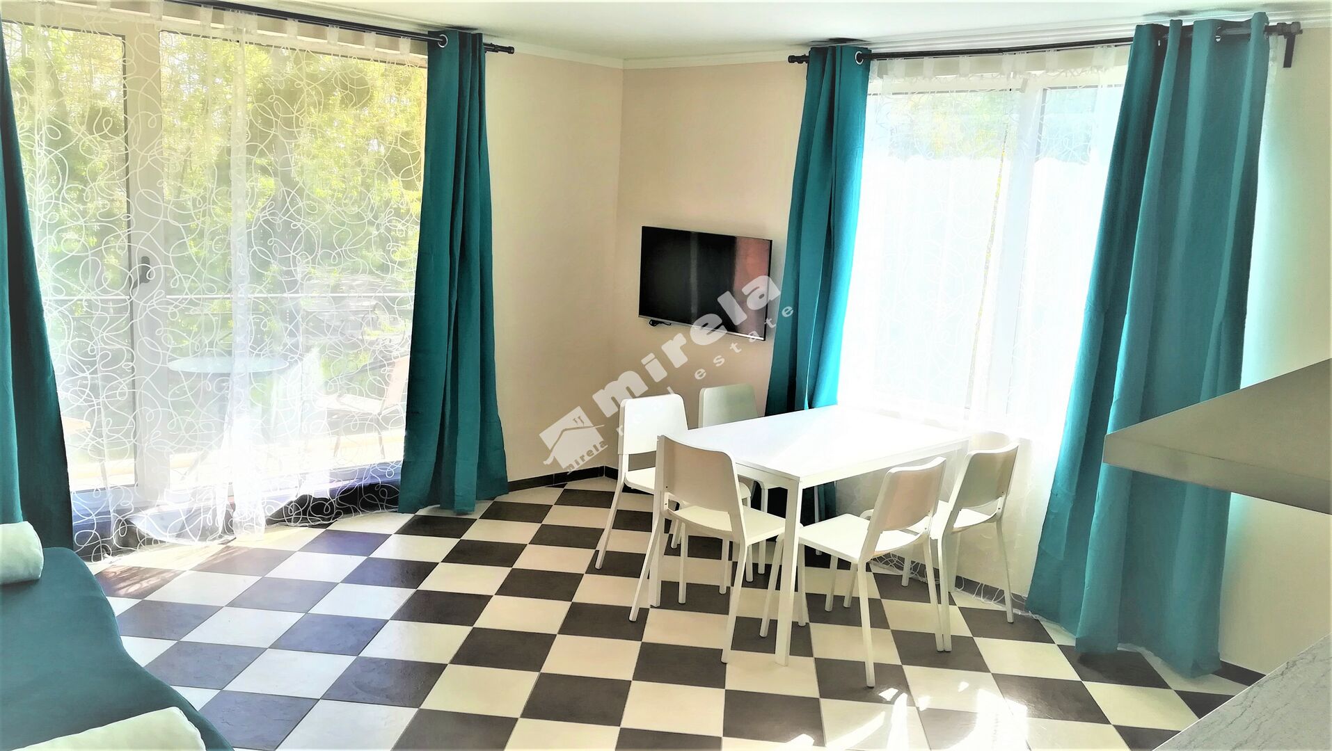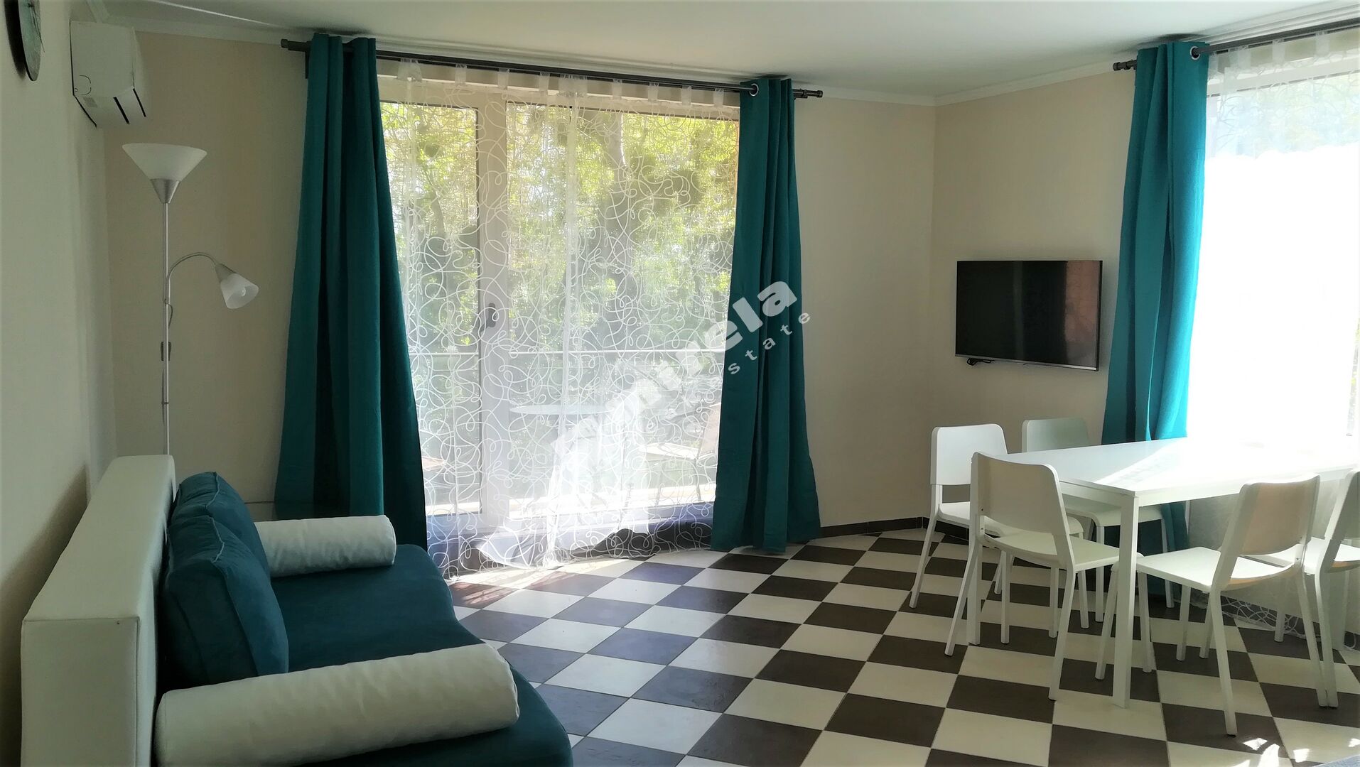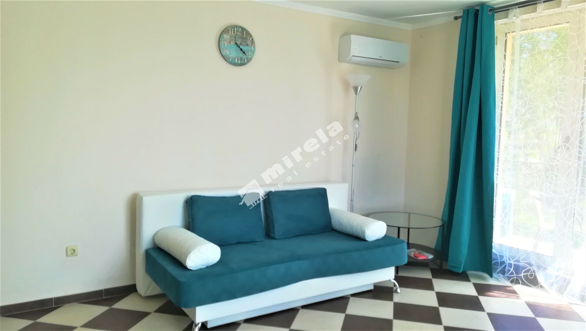 Продавам двустаен апартамент в комплекс от затворен тип на метри от плаж "Златна рибка", град Созопол. Разпределението на апартамента е следното: коридор, всекидневна с кухненски кът, спалня, баня с тоалетна и две тераси. Продава се във вида показан на снимките.
