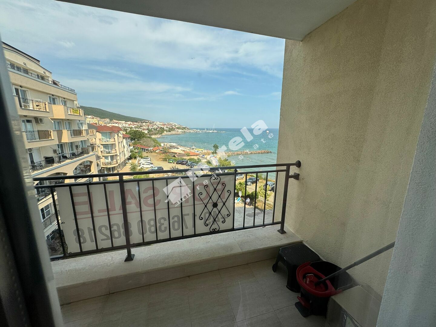 Апартаментът се състои от всекидневна с кухненска част, спалня, баня с тоалетна и тераса. Всички мебели и материали използвани за обзавеждането му са от високо качество. От терасата има гледка море. Продава се във вида показан на снимките, готов за нанасяне. Акт 16. Такса обслужване 280 евро на година /23.30 евро на месец/.