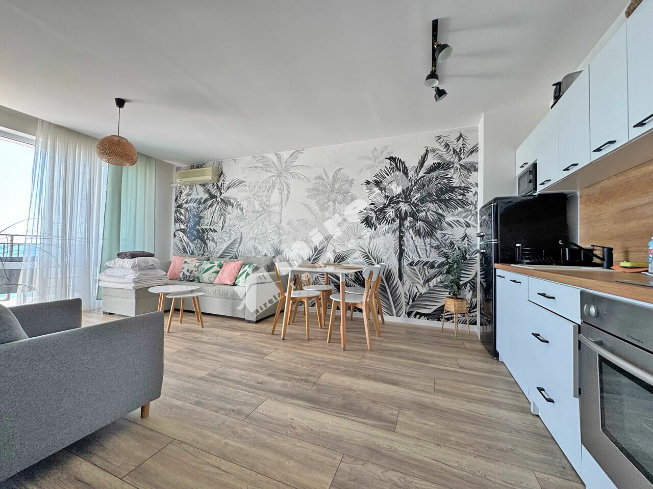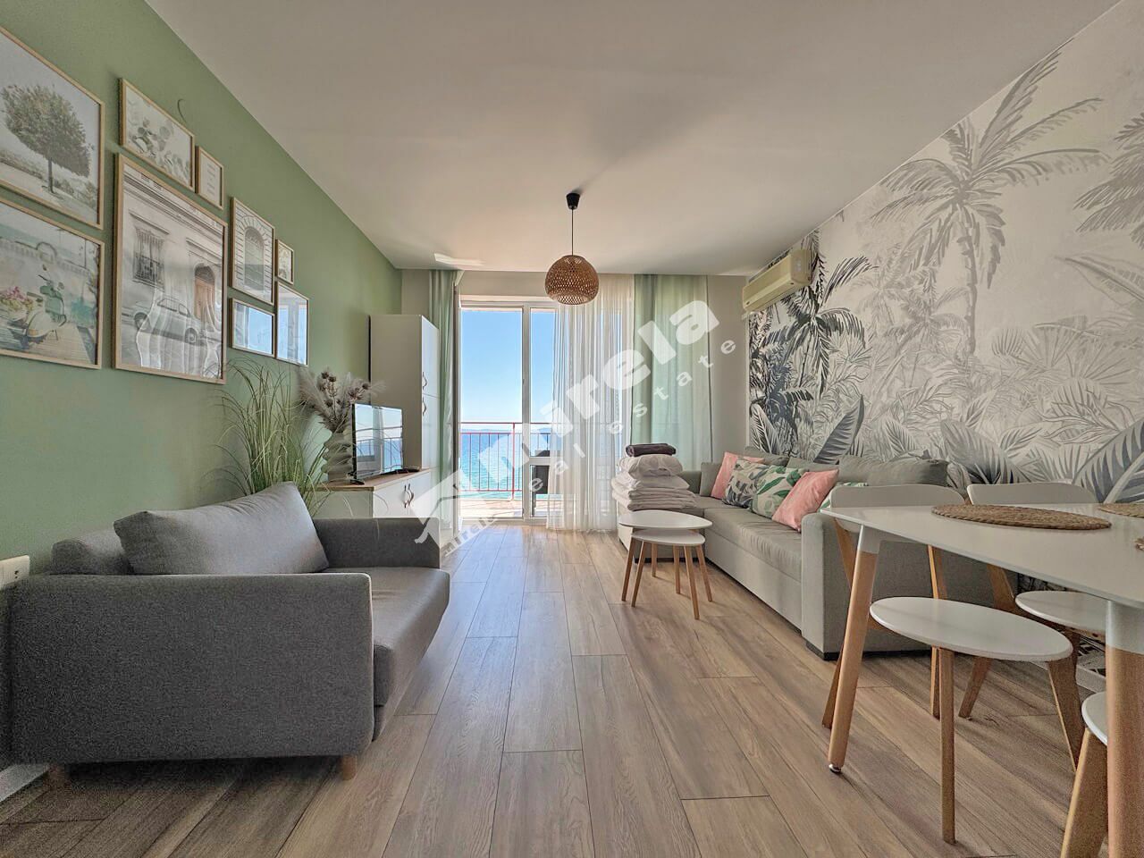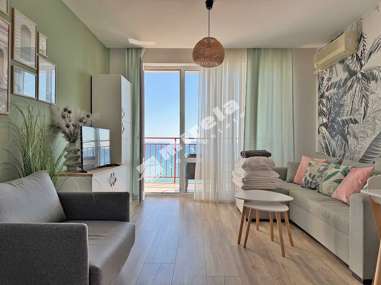 Предлагаме за продажба отлично обзаведен и оборудван двустаен апартамент на първа линия с гледка море.