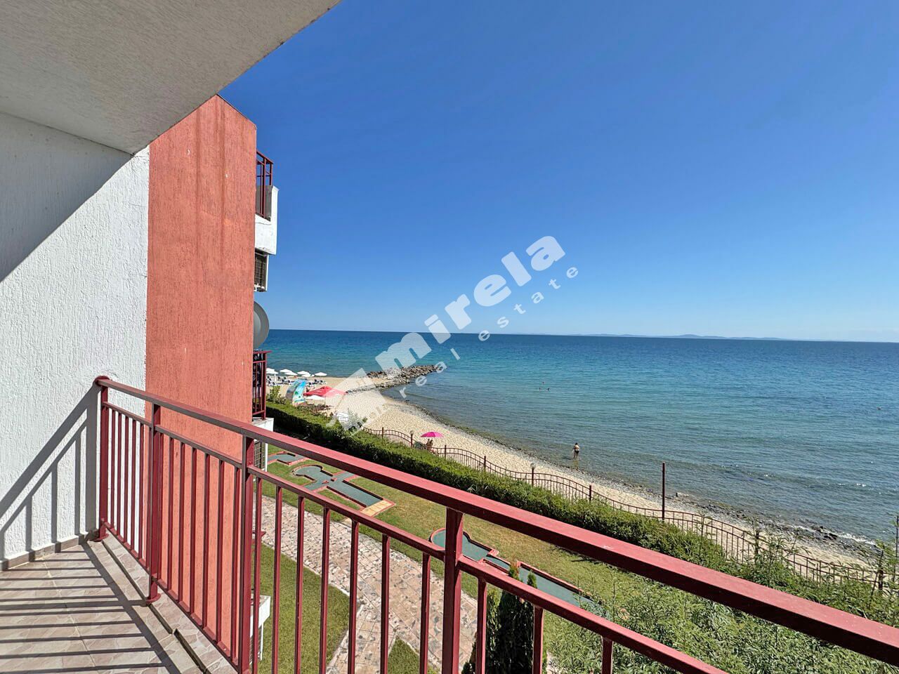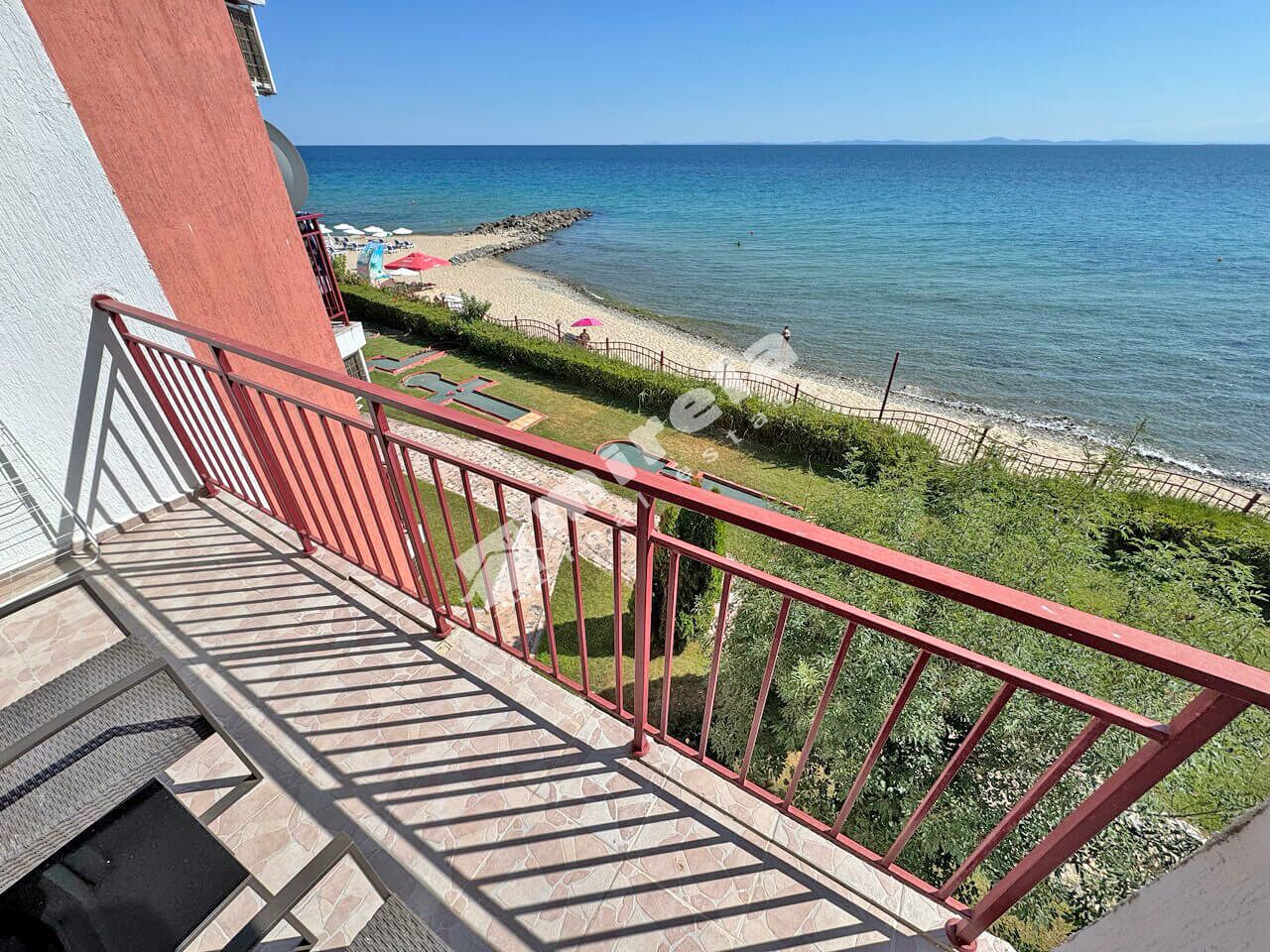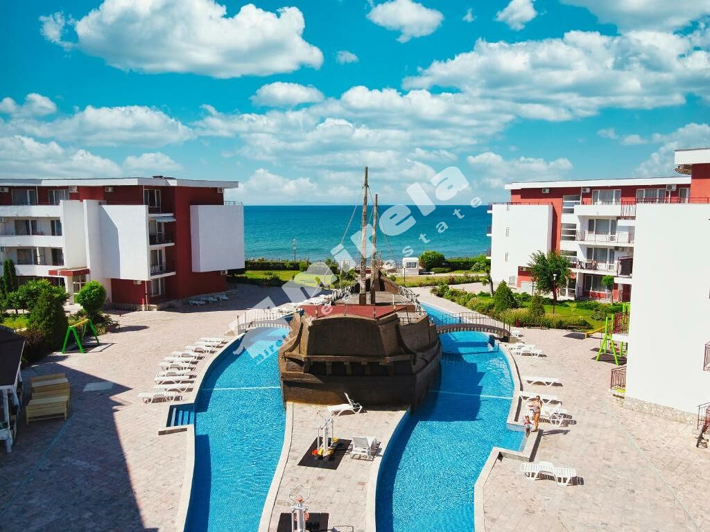 Апартаментът се намира в много добре поддържан комплекс на първа линия в к.к.Елените, гр.Несебър.