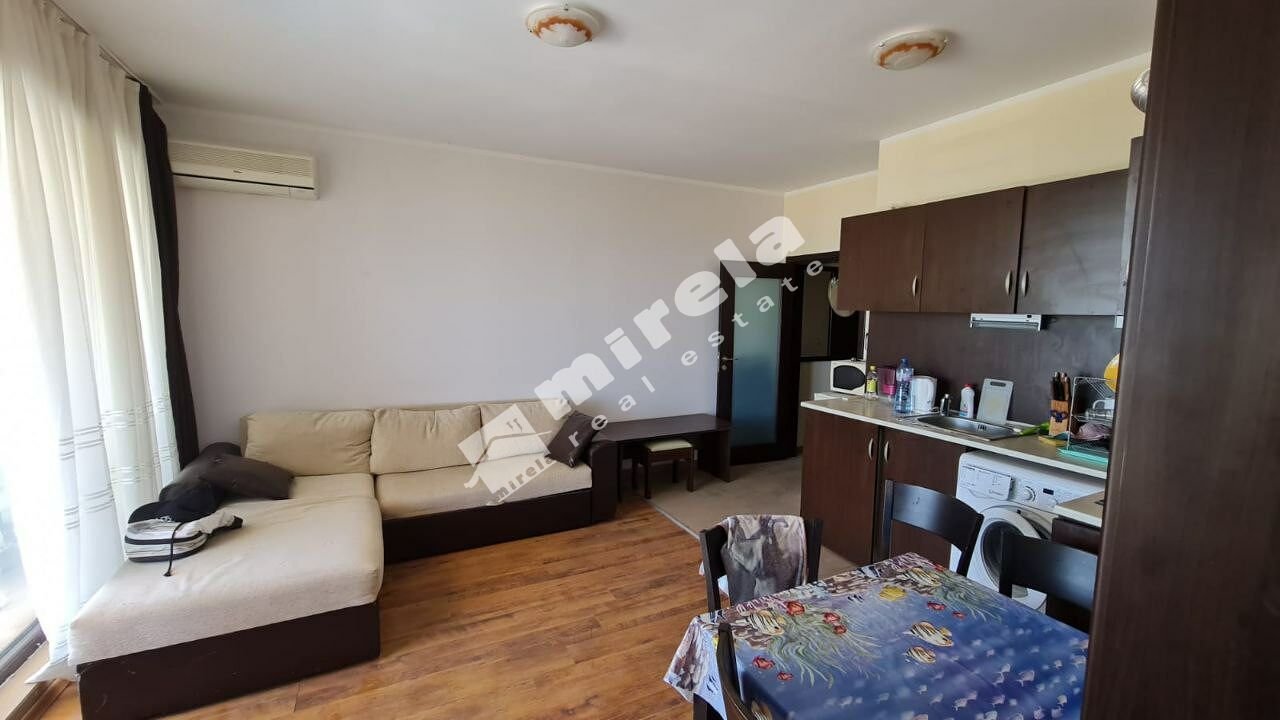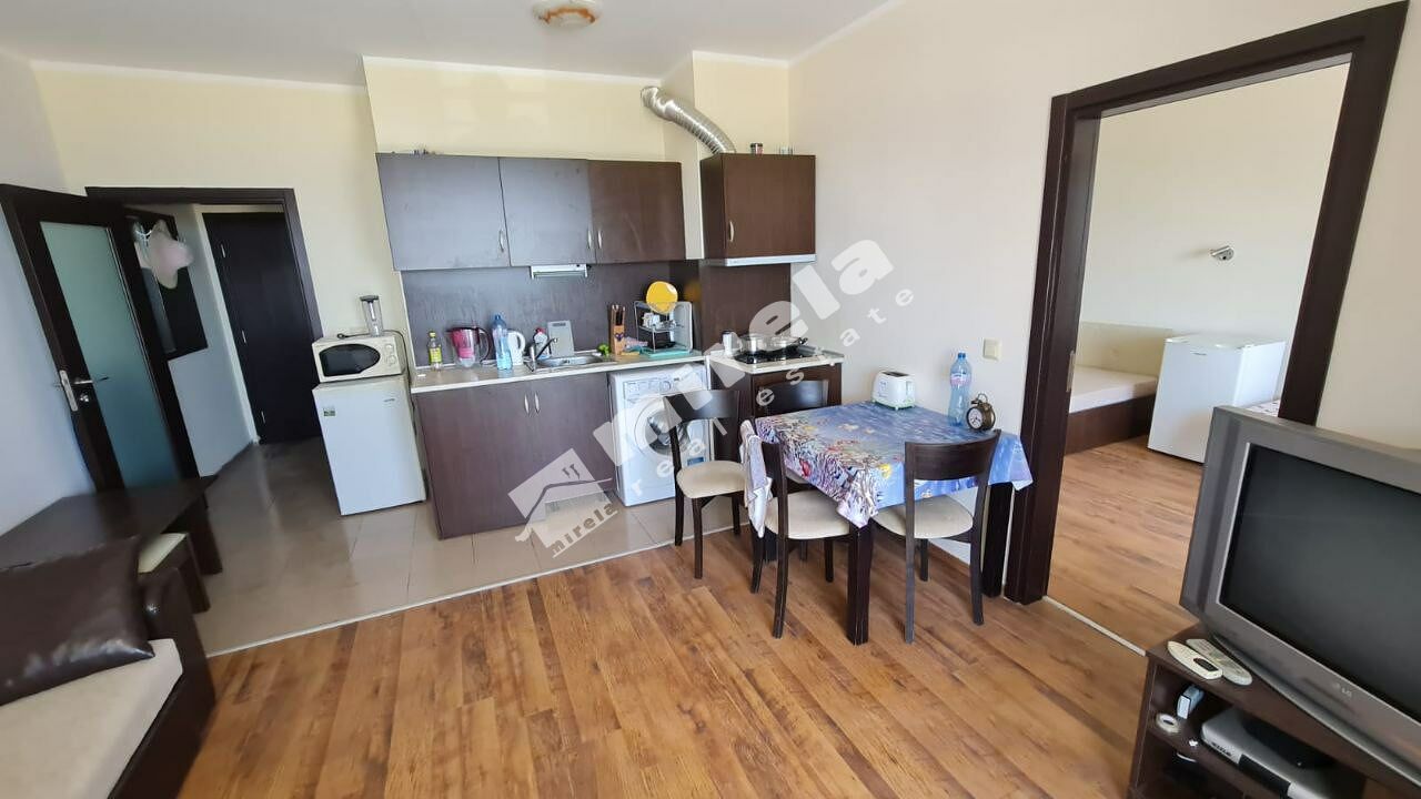 Апартаментът е обзаведен, състои се от антре, кухня и хол, спалня, два санитарни възела- в антрето и в спалнята, просторна тераса.