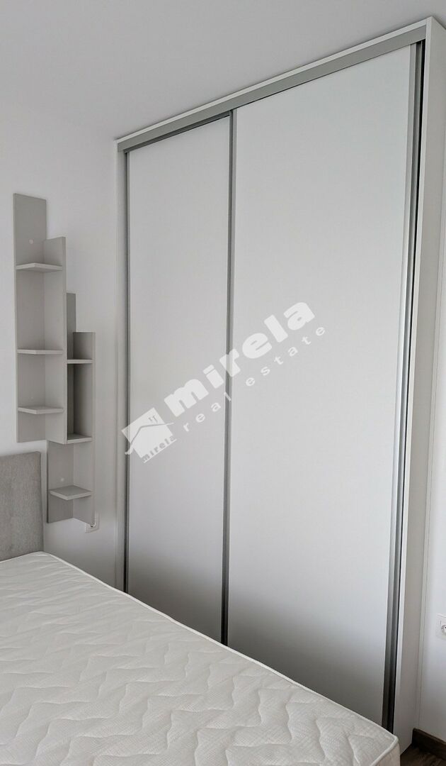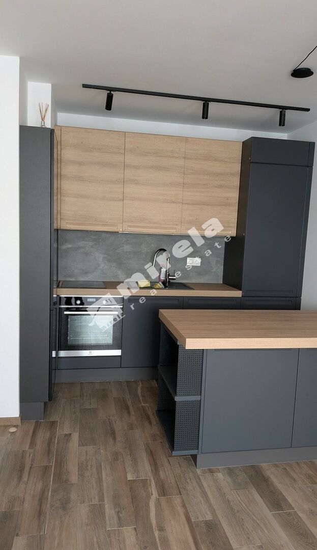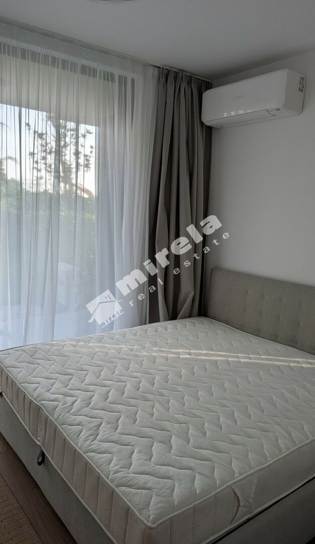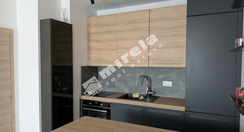 Разпределение: дневна с трапезария и кухненски бокс, спалня, баня с тоалетна, тераса и малък собствен двор (18 кв. м). Модерно и стилно обзаведен.