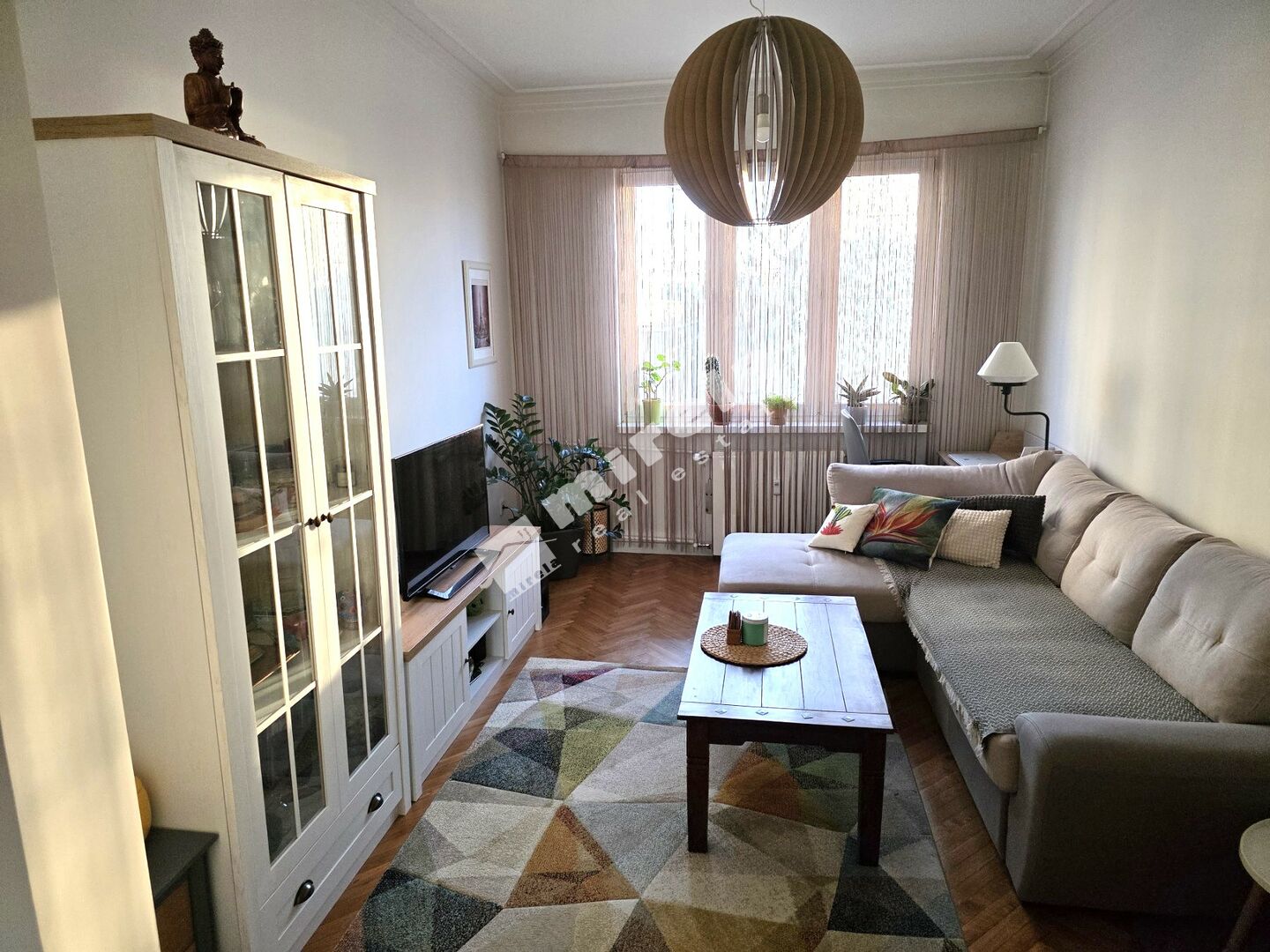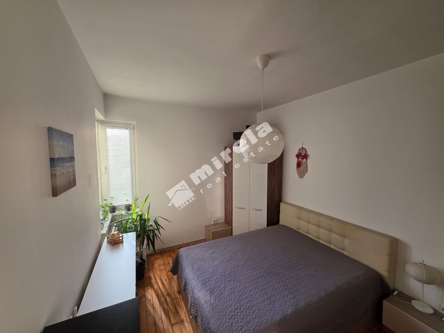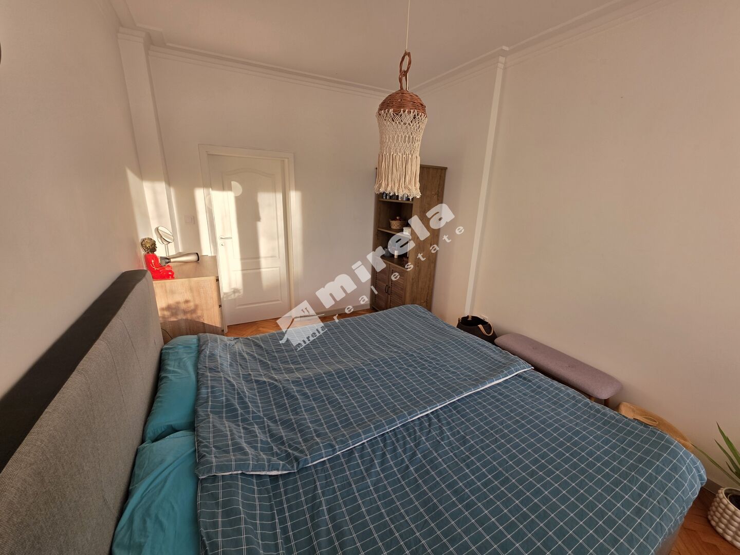 Апартаментът е с просторни помещения и високи тавани. Състои се от вестибюл, хол, две спални, които са ориентирани към тих вътрешен двор, кухня, баня, тоалетна, балкон и две антрета.