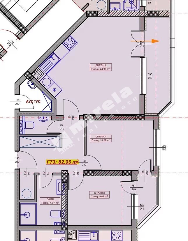 Distance: supermarket - 170 m, school - 450 m, main street - 20 m, park - 400 m, from bus stop - 600 m