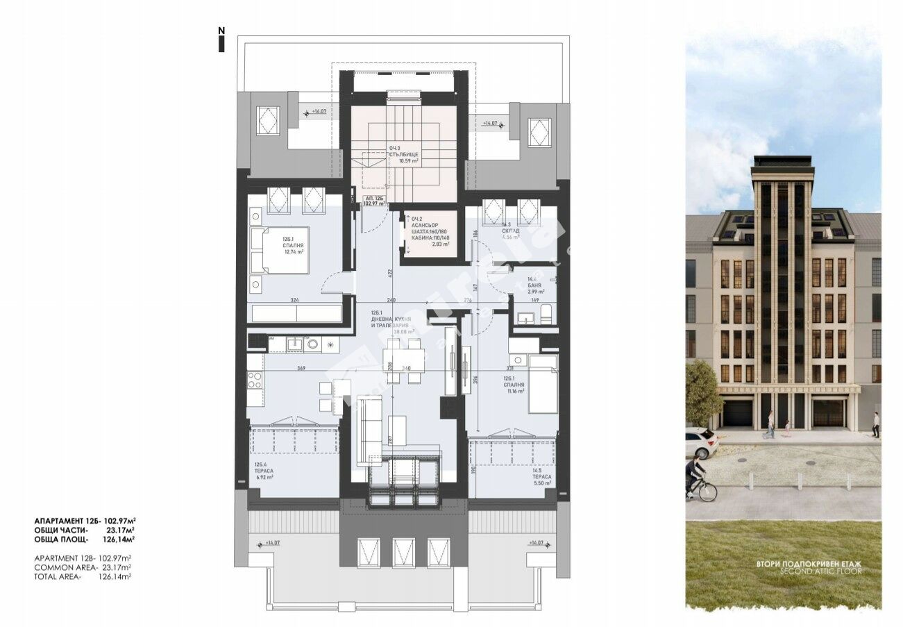 Total size: 126.14 sq.m