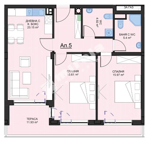 Към апартамента има и складово помещение с площ от 3,13 кв.м.