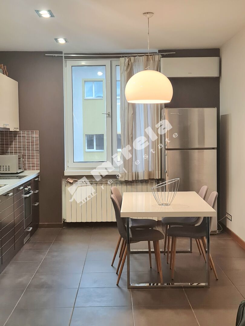 Жилището се състои от голяма дневна с кухня и трапезария, две спални, баня с тоалетна и антре. Стилно обзаведено, с климатик във всяка стая.