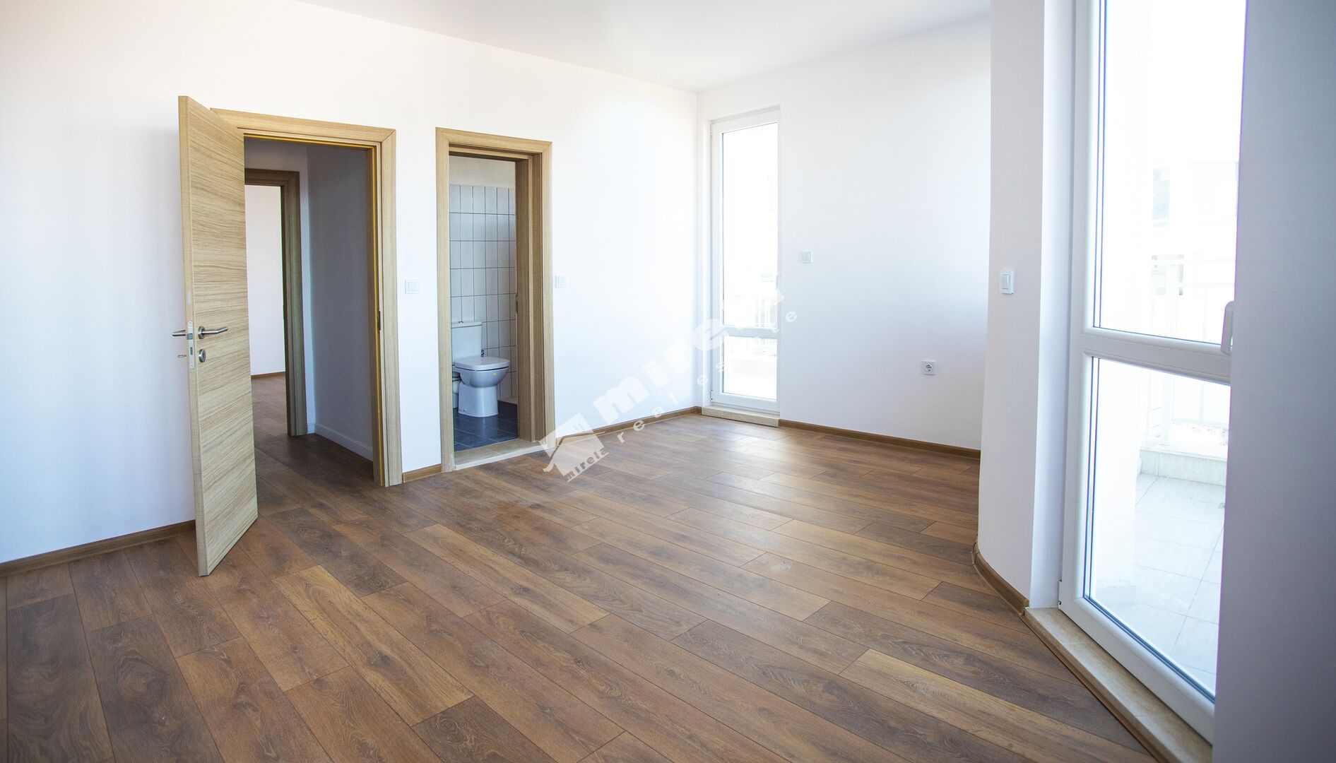 Състои се от всекидневна с трапезария и кухня, 2 спални, 2 санитарни помещения, гардеробна и 2 големи тераси.