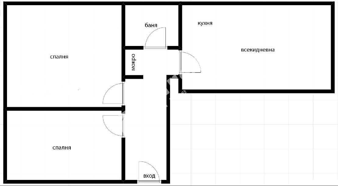 Има следното разпределение: просторно антре, дневна с кухненски бокс и трапезария, две самостоятелни спални, мокро помещение и баня с тоалетна
