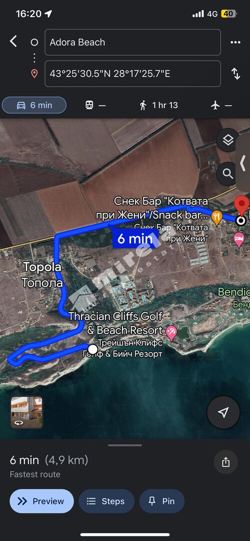 Distance: City of Varna - 55 km, airport - 55 km