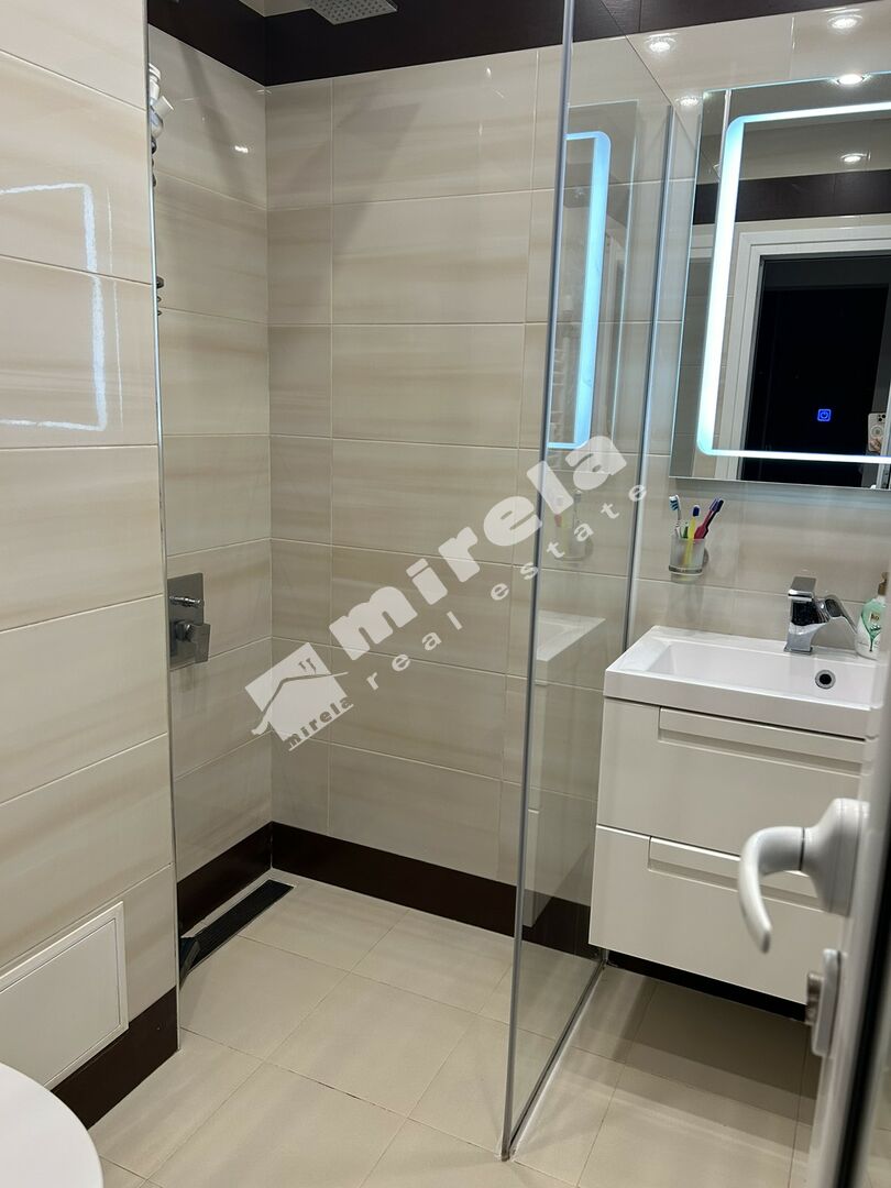 Разпределението включва антре, голяма кухня с трапезария с усвоен балкон пред нея, две непреходни спални, просторен хол със слънчев балкон и изглед към Витоша, трета спалня с достъп през хола, баня с тоалетна, втора тоалетна и голям килер.