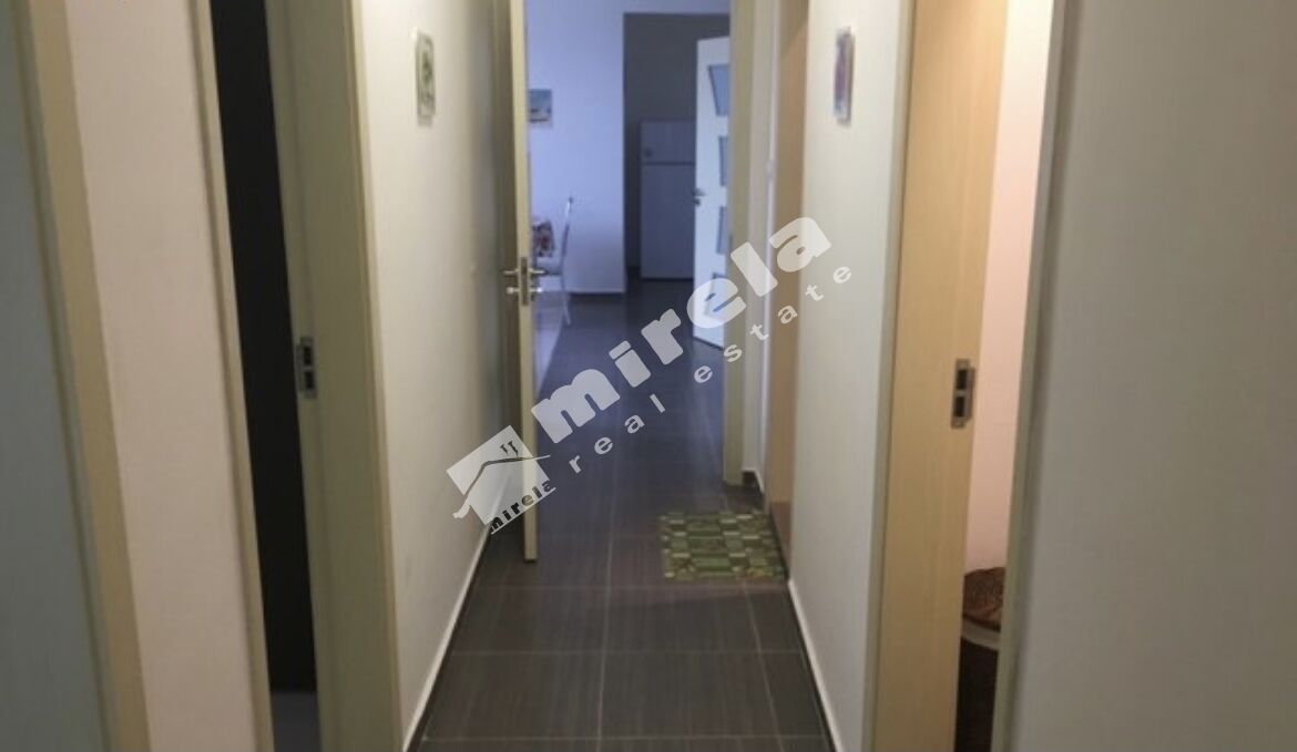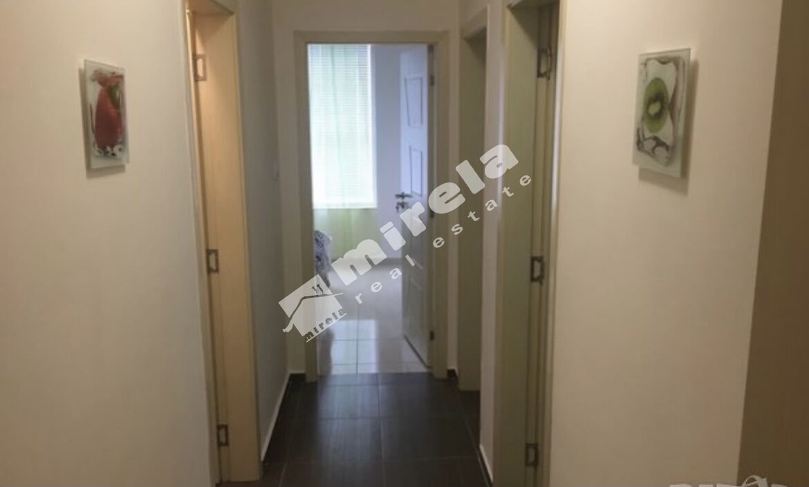 Разпределението включва: коридор, три стаи със спални, просторна дневна с кухненски бокс, две бани с тоалетни, два балкона и мокро помещение.