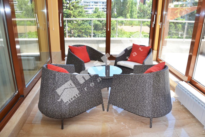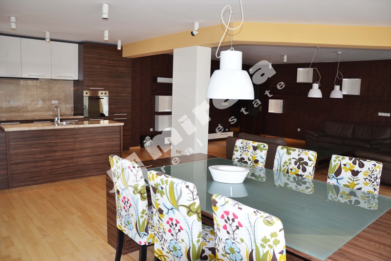 Luxury multibedroom apartment in new building in Borovo quarter. Its total area is 210 sq. m and to it there are also terrace /120 sq. m/, two garages, separate storage and basement.