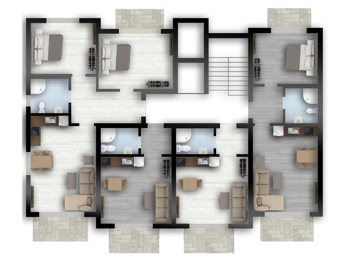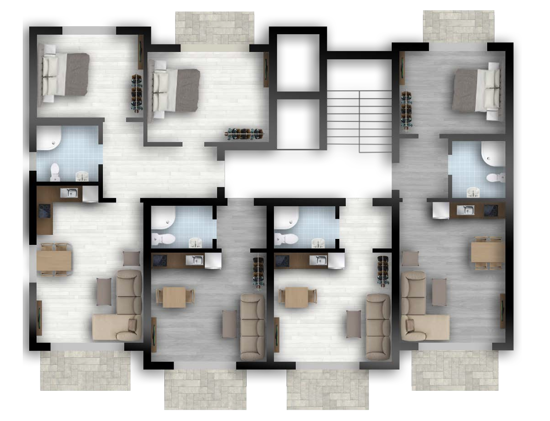 Комплексът предлага възможност за целогодишно живеене. Включва 66 апартамента. От прозорците или терасите им се разкрива красива морска панорама.