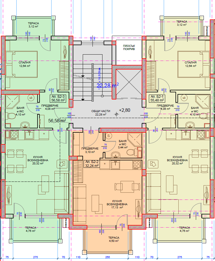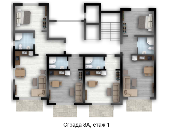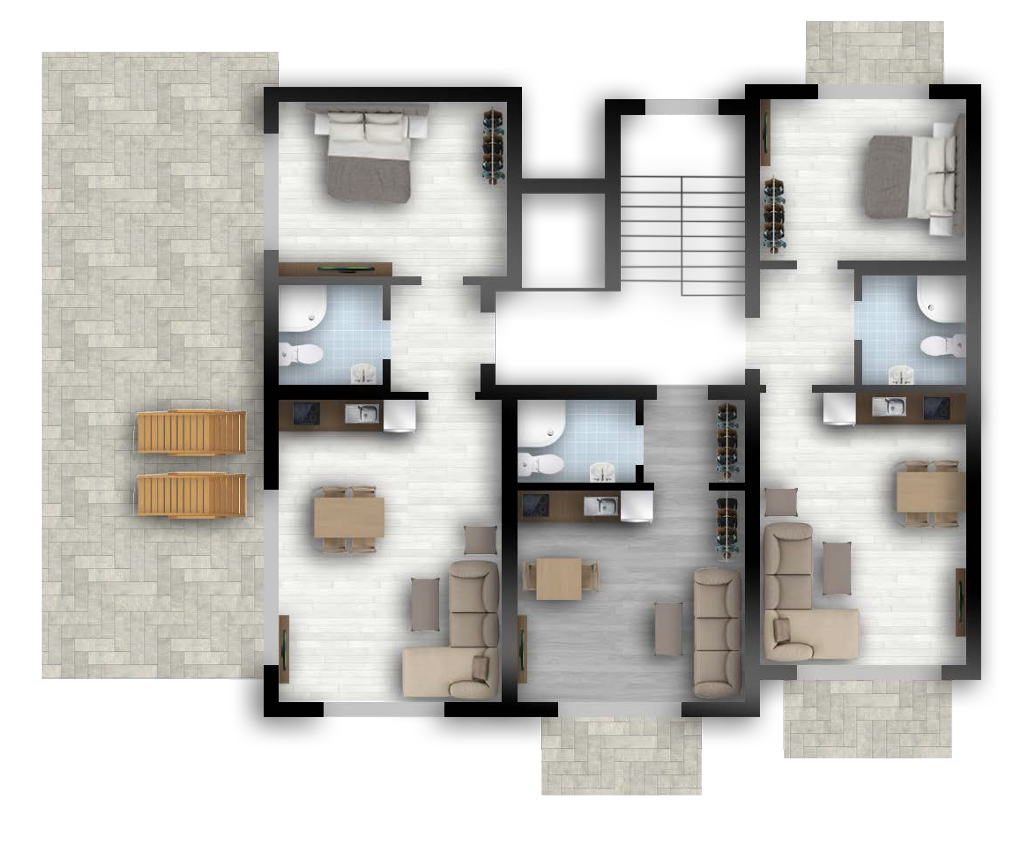 Всички дневни помещения на апартаментите са с южно изложение и гледка море, а спалните – със северно, което осигурява комфорт и приятен климат през цялата година.