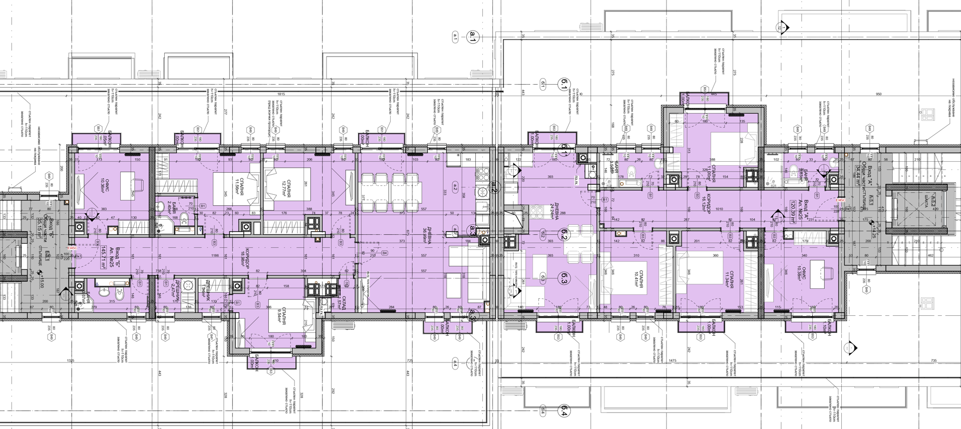 • Луксозни общи части по проект напълно завършени и изпълнени с висококачествени материали и покрития, включително стълбища и площадки: под - естествен камък или висок клас гранитогрес; стени и тавани - гипсова шпакловка и боя или декоративна мазилка; електроинсталация с ключове и осветителни тела.
