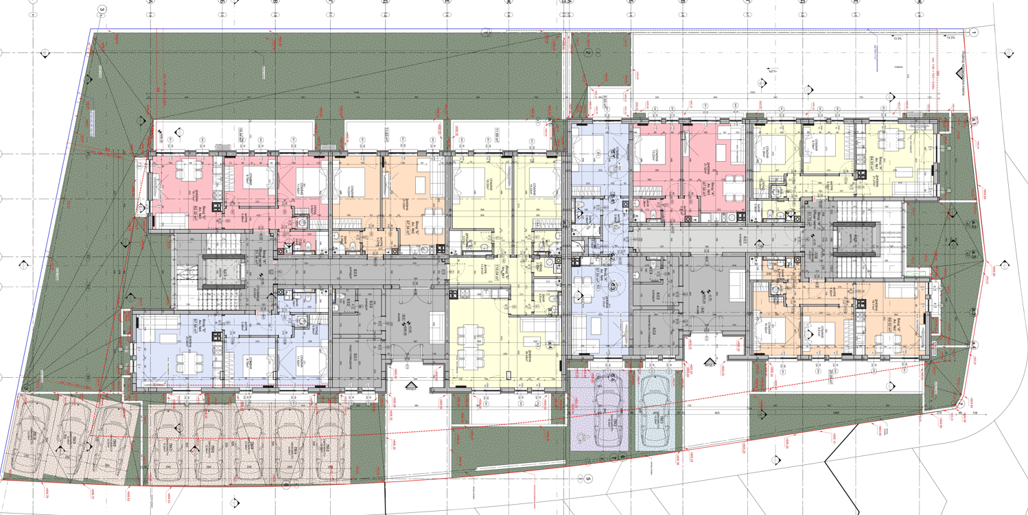 • Подземен паркинг: настилка от шлайфан бетон; стени - бетон с крайно покритие латекс; таван - от готова стоманобетонна плоча.