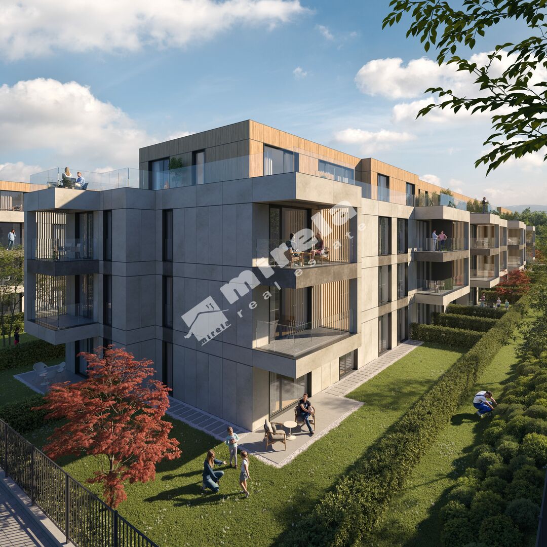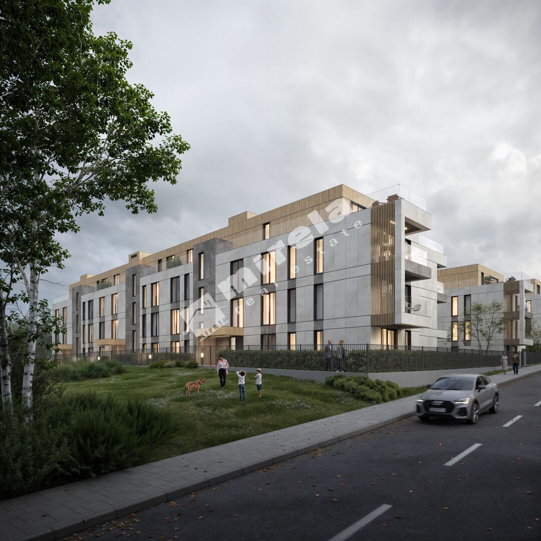 Комплексът включва четири многофамилни жилищни сгради с подземни гаражи и богато озеленяване.