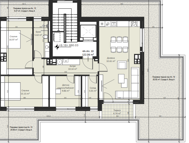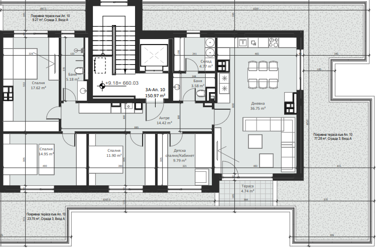 | Apartment 10, MULTI-BEDROOM, Entrance А, 179.10 m2, (Built-up area 150.97 m2), € 375 453 (€ 2 096/sq.m) | SOLD |