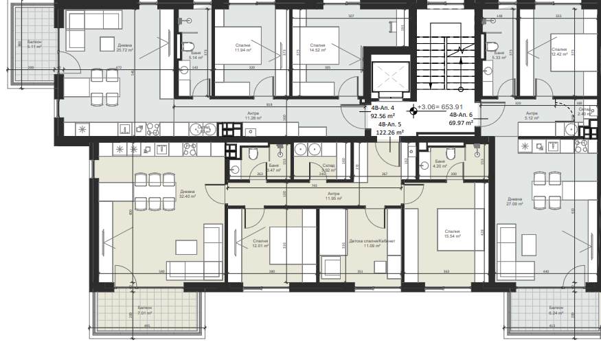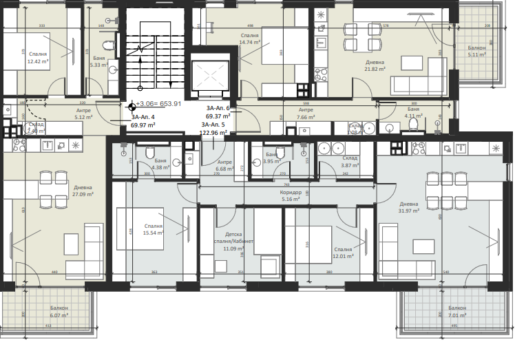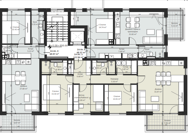 | Apartment 5, 3 BRS APARTMENT, Entrance А, 144.90 m2, (Built-up area 122.96 m2), € 295 000 (€ 2 036/sq.m) | SOLD |