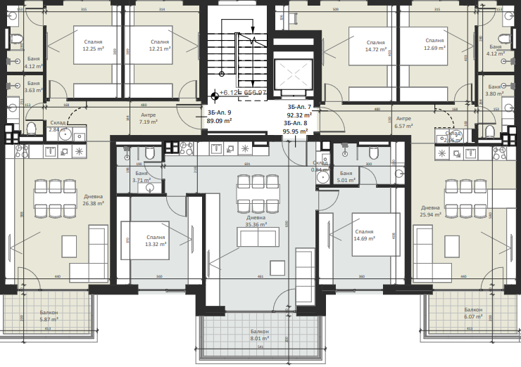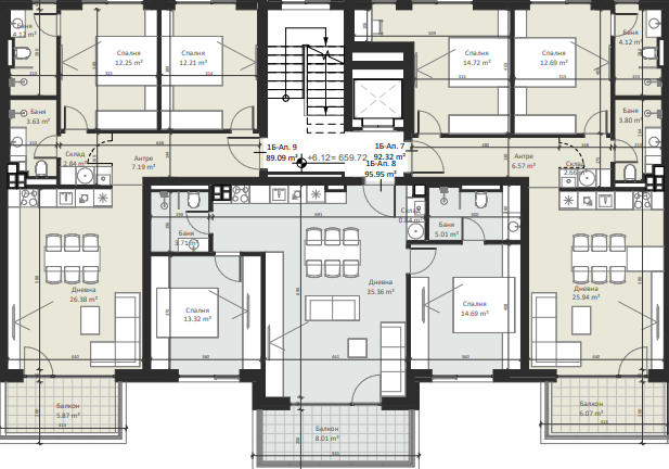 | Apartment 6, 2 BRS APARTMENT, Entrance В, 104.99 m2, (Built-up area 89.09 m2), € 194 223 (€ 1 850/sq.m) | SOLD |