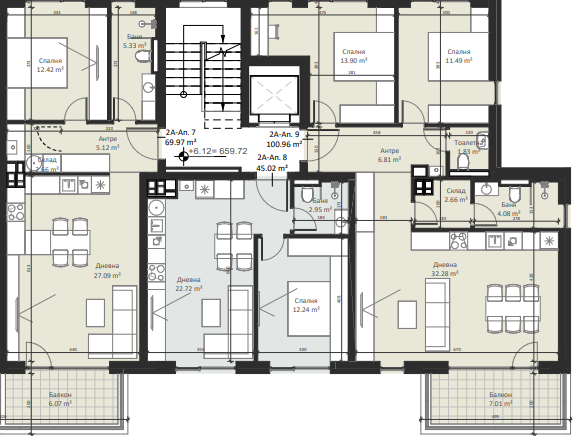 | Apartment 9, 2 BRS APARTMENT, Entrance А, 116.87 m2, (Built-up area 100.96 m2), € 232 000 (€ 1 985/sq.m) | SOLD |