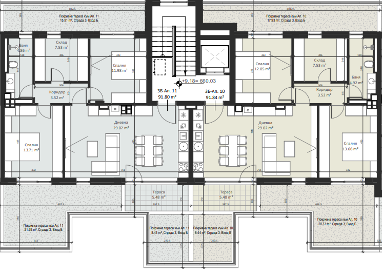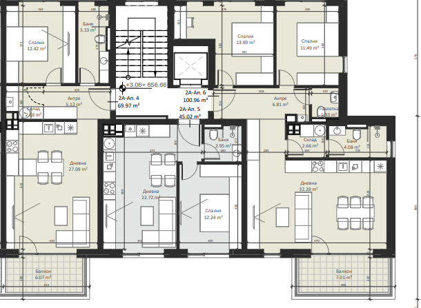| Apartment 11, 2 BRS APARTMENT, Entrance В, 107.47 m2, (Built-up area 91.87 m2), € 216 900 (€ 2 018/sq.m) | SOLD |