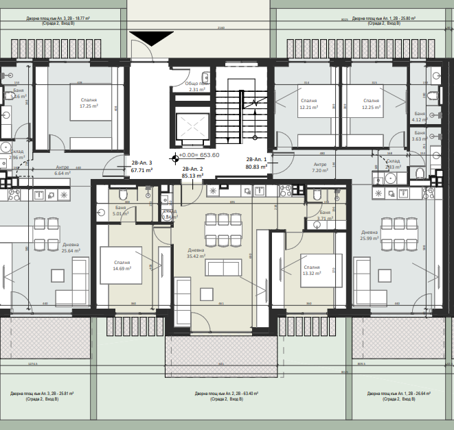 | Apartment 1, 2 BRS APARTMENT, Entrance В, 92.58 m2, (Built-up area 80.83 m2), € 187 000 (€ 2 020/sq.m) | AVAILABLE |