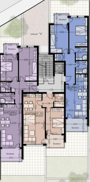 Сградата разполага с двустайни, тристайни и четиристайни апартаменти за продажба. Предават се в степен на завършеност по БДС, на шпакловка и замазка.