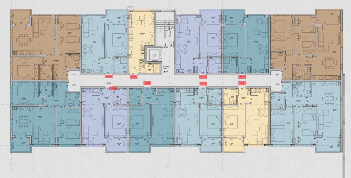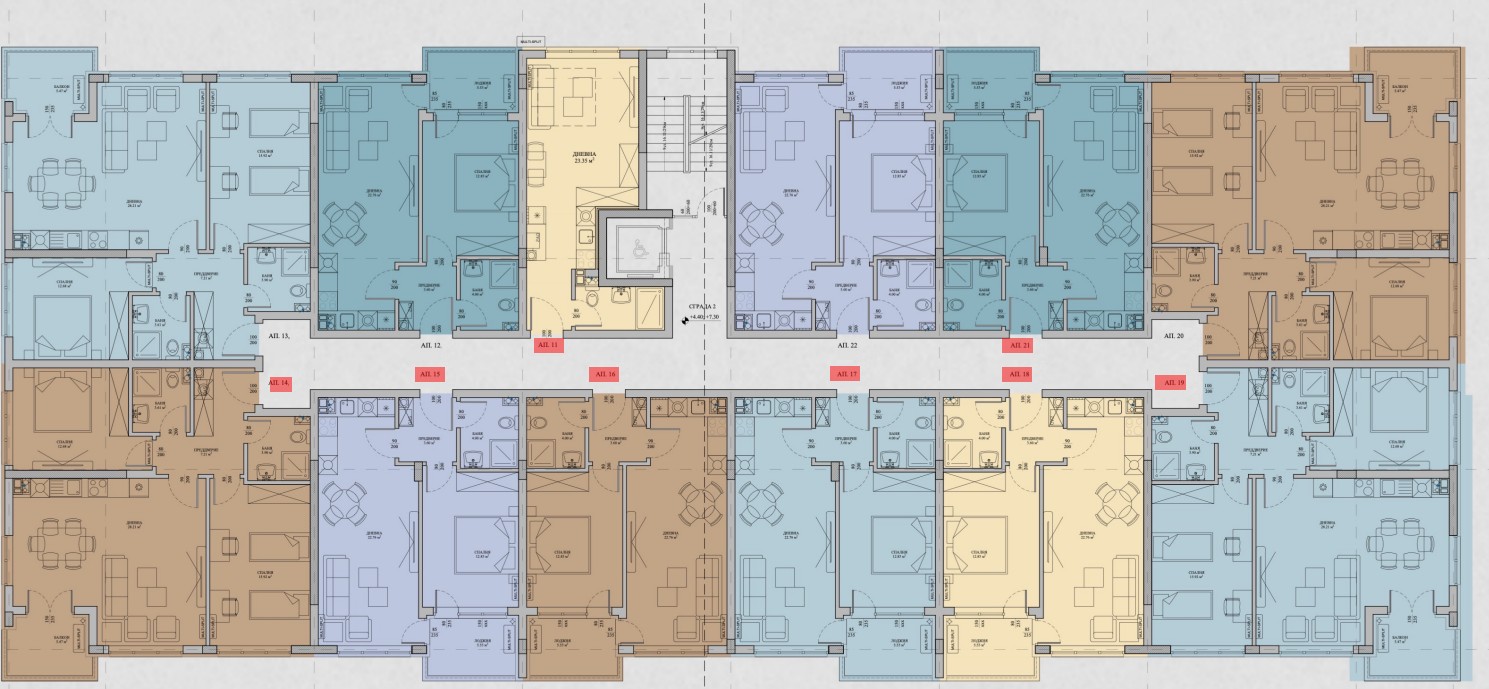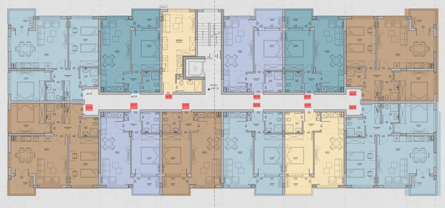 Жилищата са с разнообразни разпределения от компактни до просторни, а някои на приземно ниво разполагат със собствено дворно пространство, удобство което в града все по-рядко се среща.