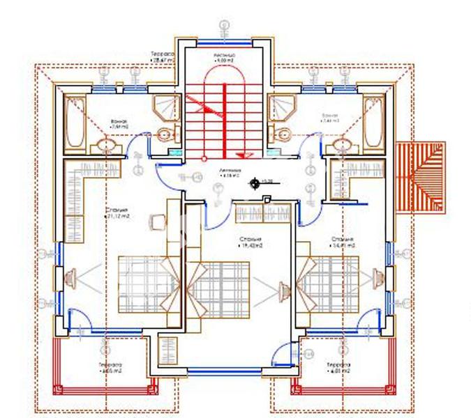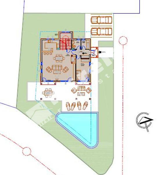 Примерен вариант №3 (изграждане по индивидуален проект) - двуфамилна двуетажна къща с РЗП 2х120 кв.м (всяка с голяма дневна, всяка с по две спални, две панорамни тераси, 2-4 паркоместа, басейн, беседка, BBQ.
