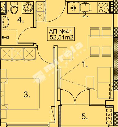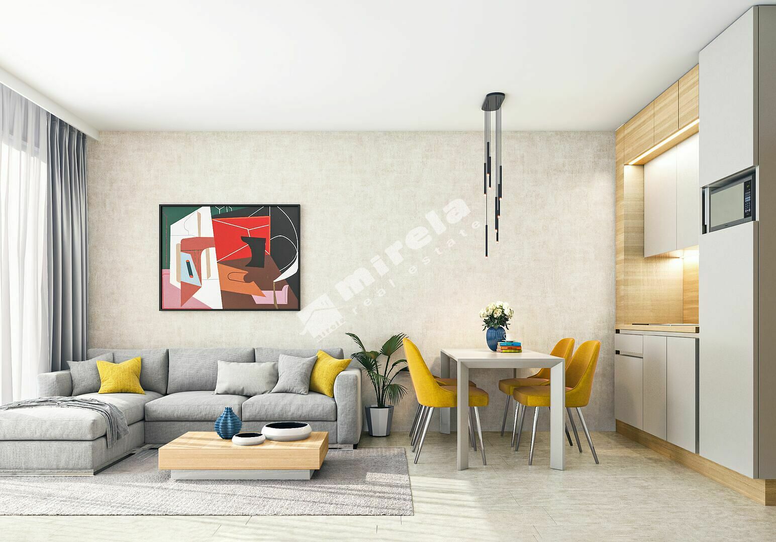 Апартаментът се състои от : коридор, дневна , спалня, балкон, баня с тоалетна.
