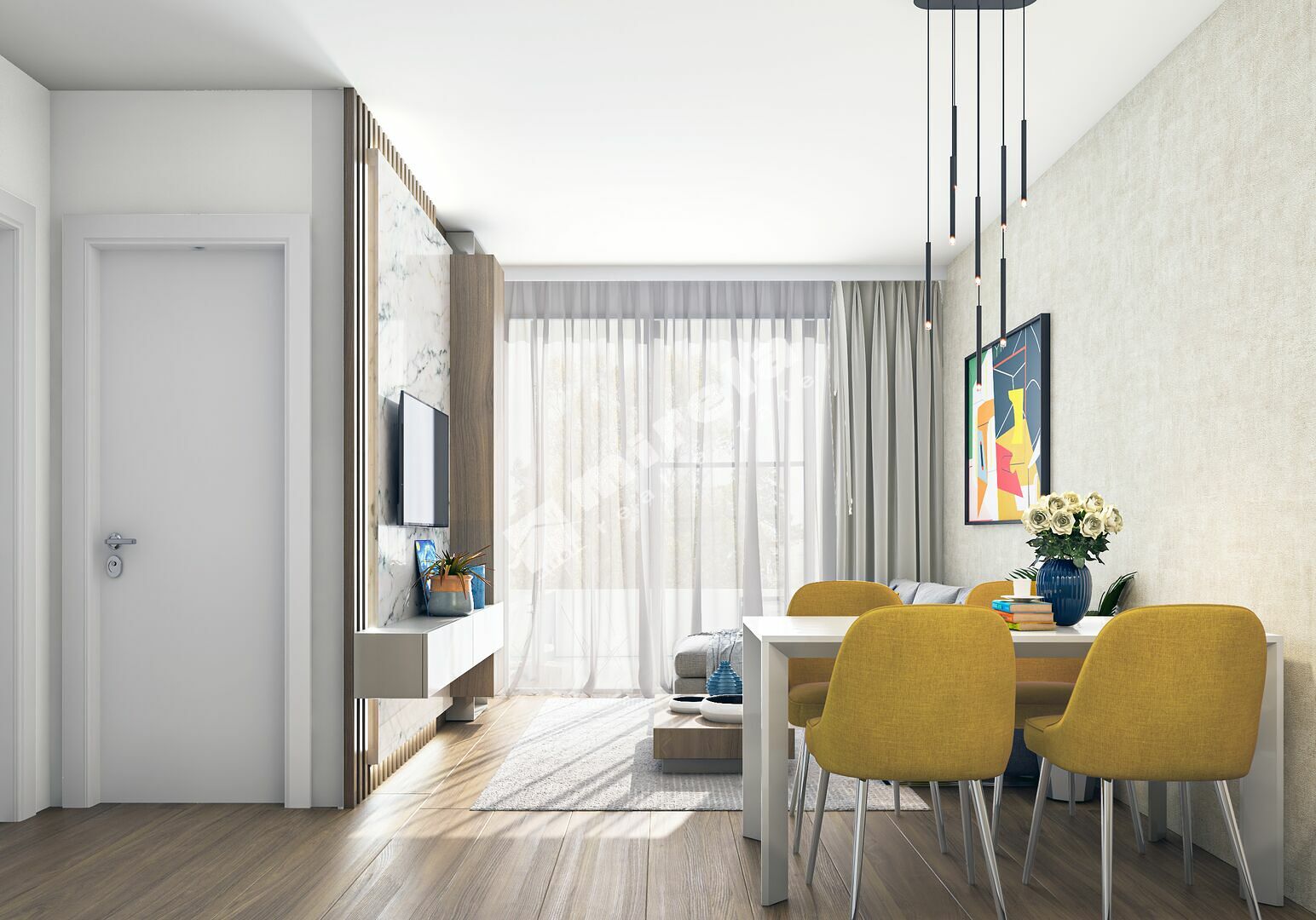 Апатаментът се състои от : коридор, дневна , спалня, балкон, баня с тоалетна.