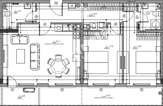 Към имота има покривна тераса с площ от 16.49 кв.м., която е вкл. в цената.
