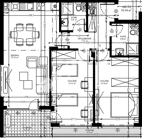 Total size: 92.44 sq.m