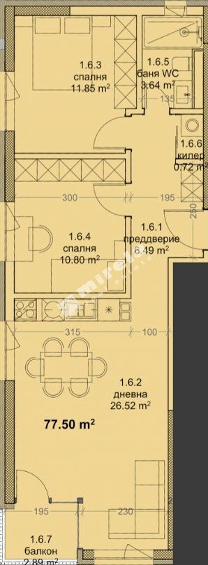 Built-up area:: 77.5 sq.m