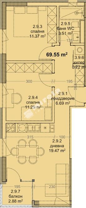 Built-up area:: 69.55 sq.m