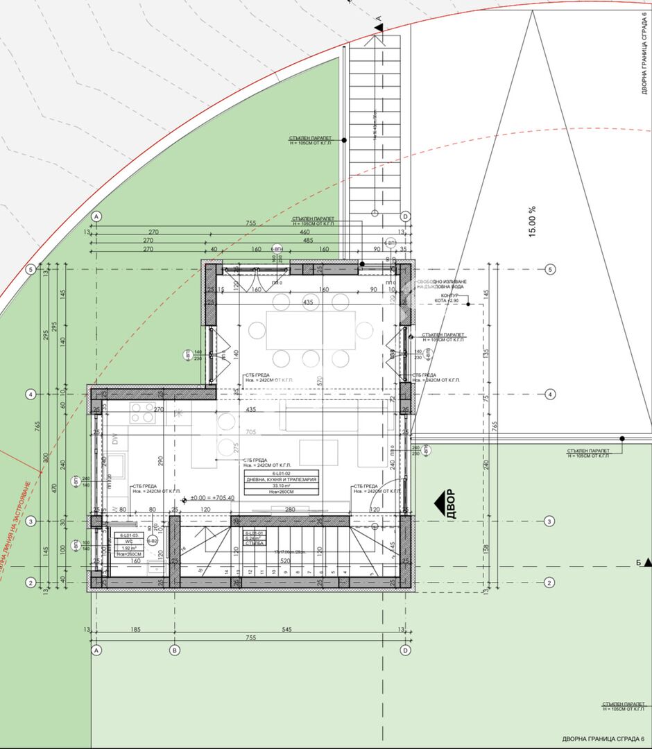 )Distance: main street - 470 m, kindergarten - 140 m, from bus stop - 400 m