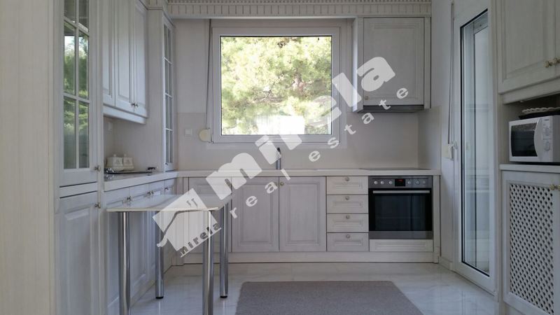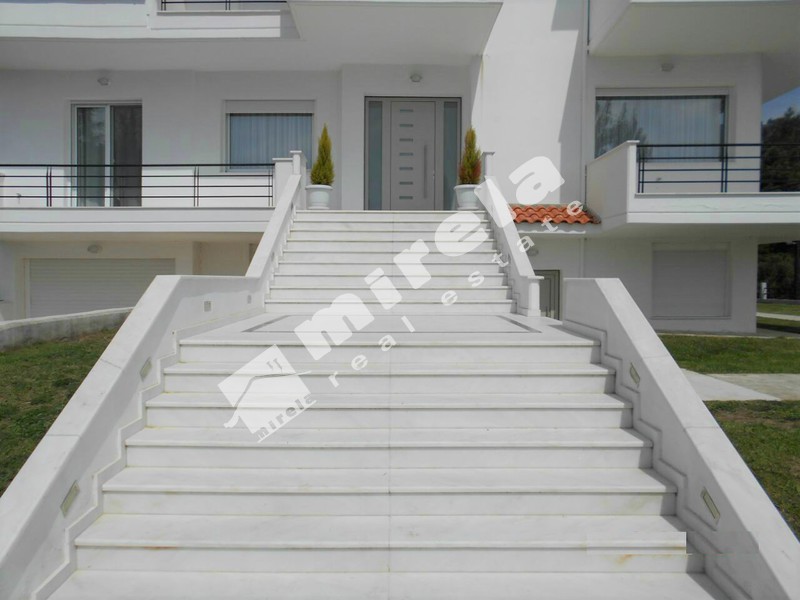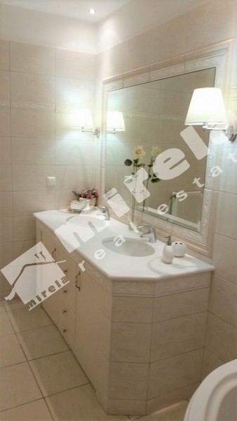 В парцел от 4000 кв. м е разположена самостоятелна къща със застроена площ от 570 кв. м. На ниво сутерен e разположен гараж, като остава достатъчно свободно пространство за обособяване на самостоятелна спалня, кухня, дневна и баня . Първо ниво - 210 кв. м, включва просторна дневна с камина и климатик, кухня, една спалня, баня с тоалетна, склад и три балкона. Вътрешна стълба води към второ ниво - 210 кв. м, на което са разположени 4 спални, баня с тоалетна, склад и три балкона. Подовите настилки в цялата къща са от висококачествен мрамор. Имотът има охранителна система - СОТ. Дворът е ограден и отлично поддържан.