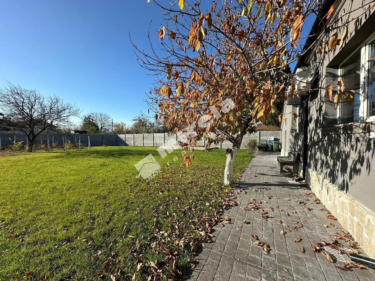 Къщата е 87кв.м на 1 етаж, с кухня, всекидневна, 2 спални, баня и тоалетна, голям озеленен двор с овощни дръвчета, паркомясто с електрическа порта. Към къщата има пристройка - стая за гости (необзаведена) с размер 21,2 кв.м, със собствена баня с тоалетна.