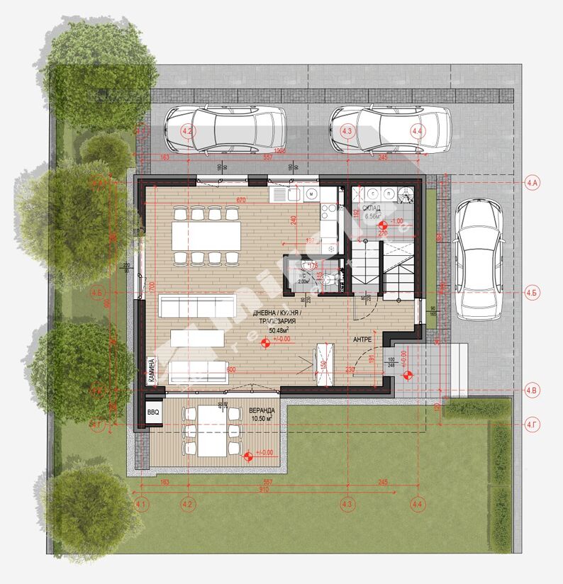 Към къщата са включени три надземни паркоместа.